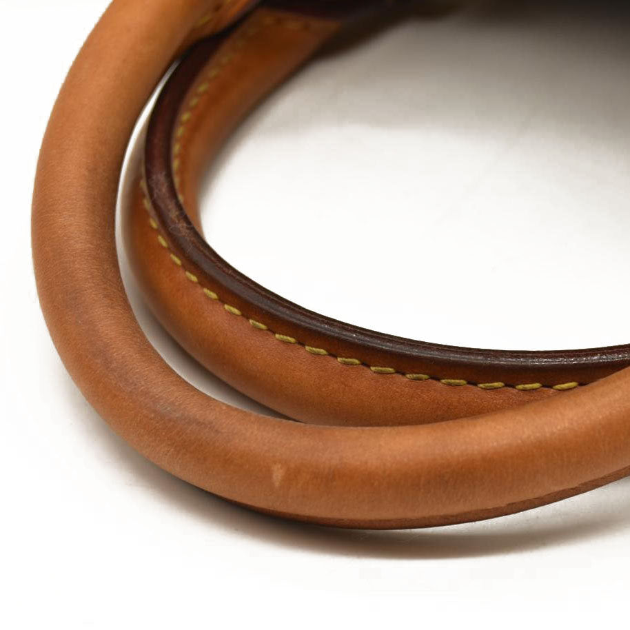Exterior: Patina of vachetta, liquid marks, dark marks on leather, minor corner wear, surface wear, structure wear