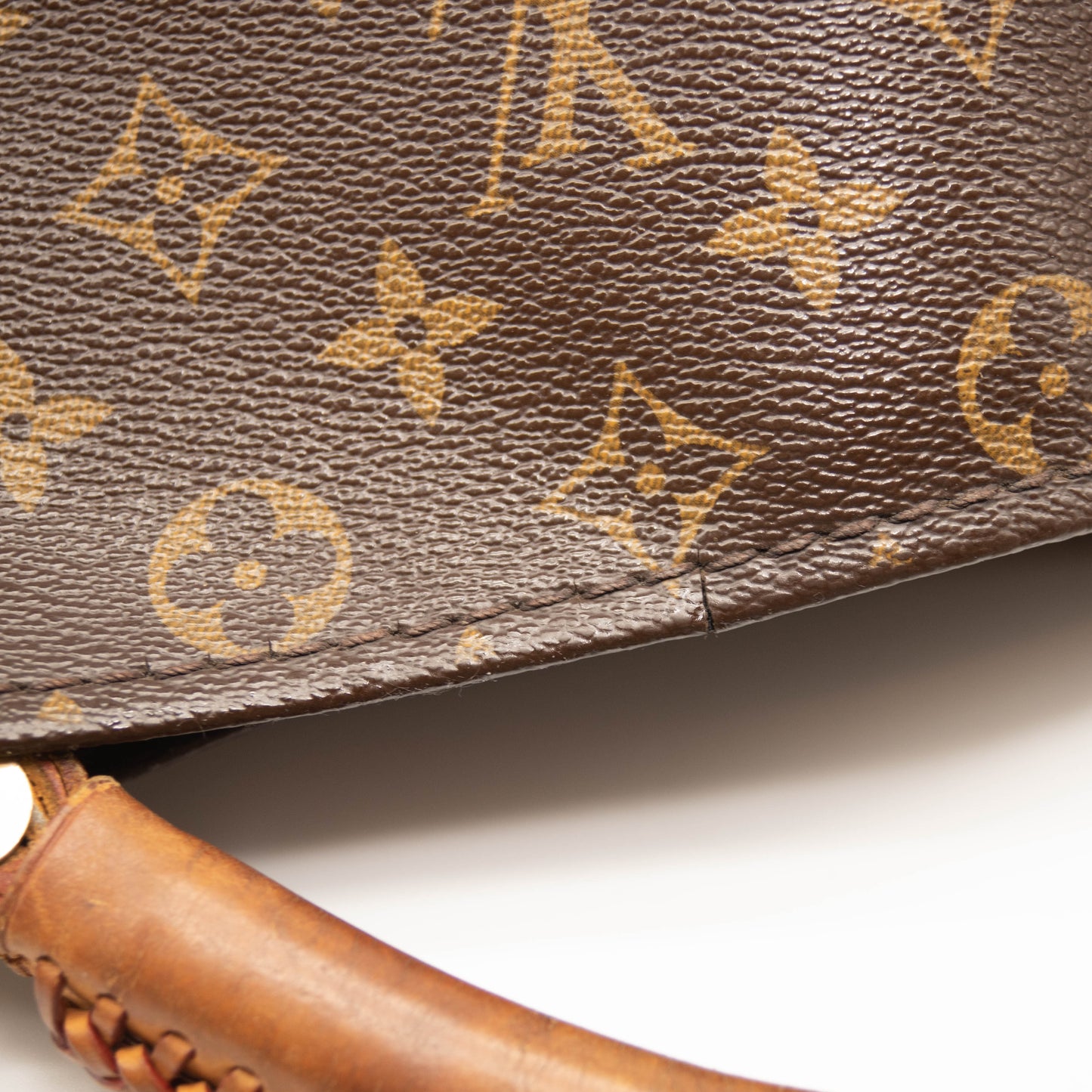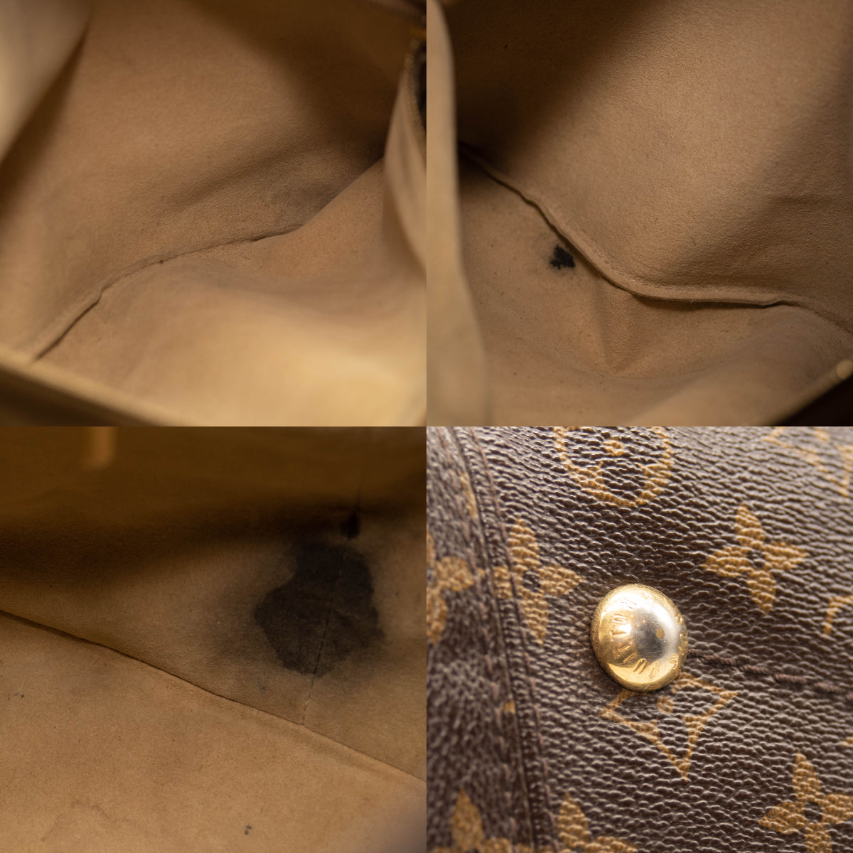 Handle: Scuffs, patina of vachetta, drying. Missing key chain