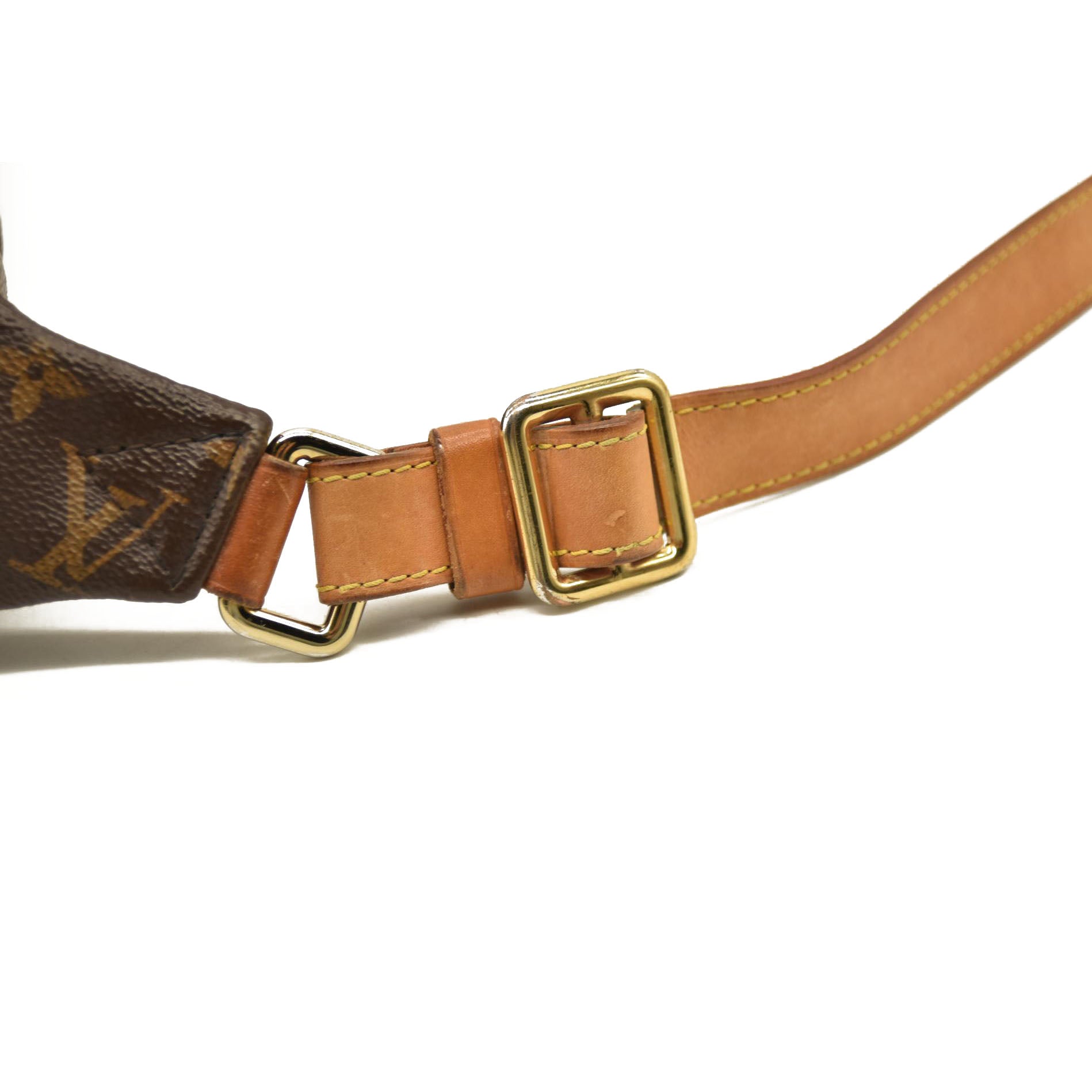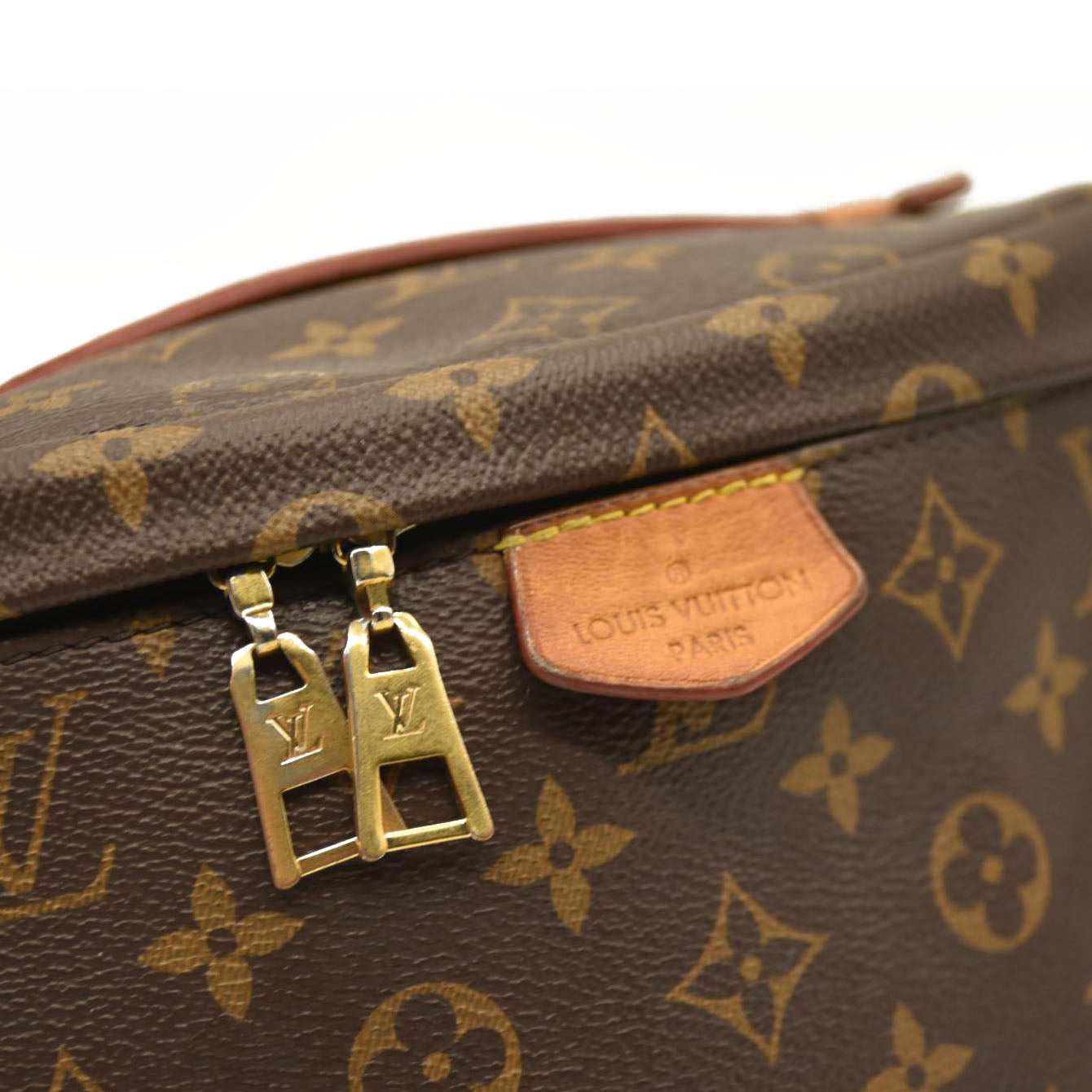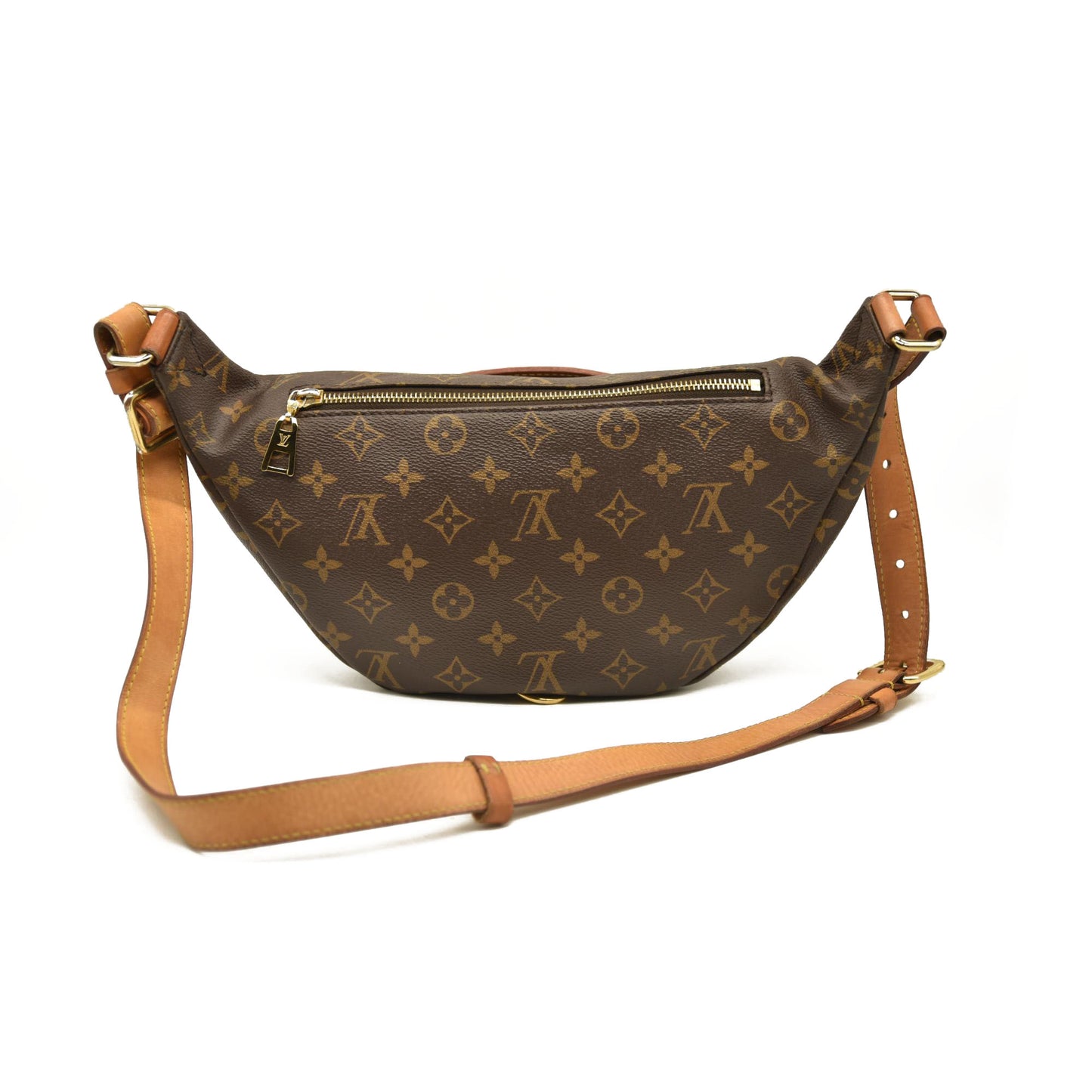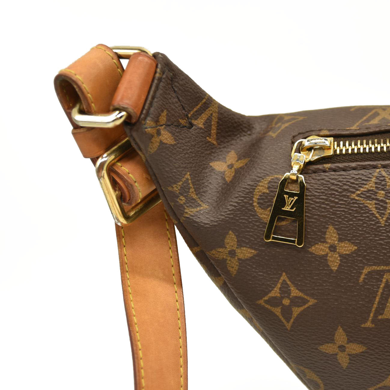 This is an authentic LOUIS VUITTON Monogram Bumbag. This stylish waist bag is created of traditional Louis Vuitton monogram on coated canvas. The bag features a vachetta cowhide leather top handle, an adjustable waist strap, and a rear zipper pocket. The main zippers open to a spacious black fabric interior.