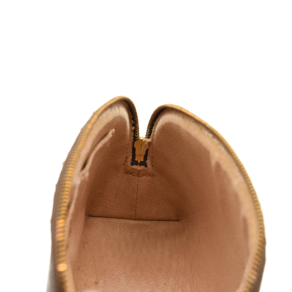 This is an authentic LOUIS VUITTON Monogram Cosmetic Pouch. This stylish pouch is crafted of classic Louis Vuitton monogram on toile canvas. The pouch features a polished brass top zipper that opens to a beige leather-like interior with a patch pocket.
