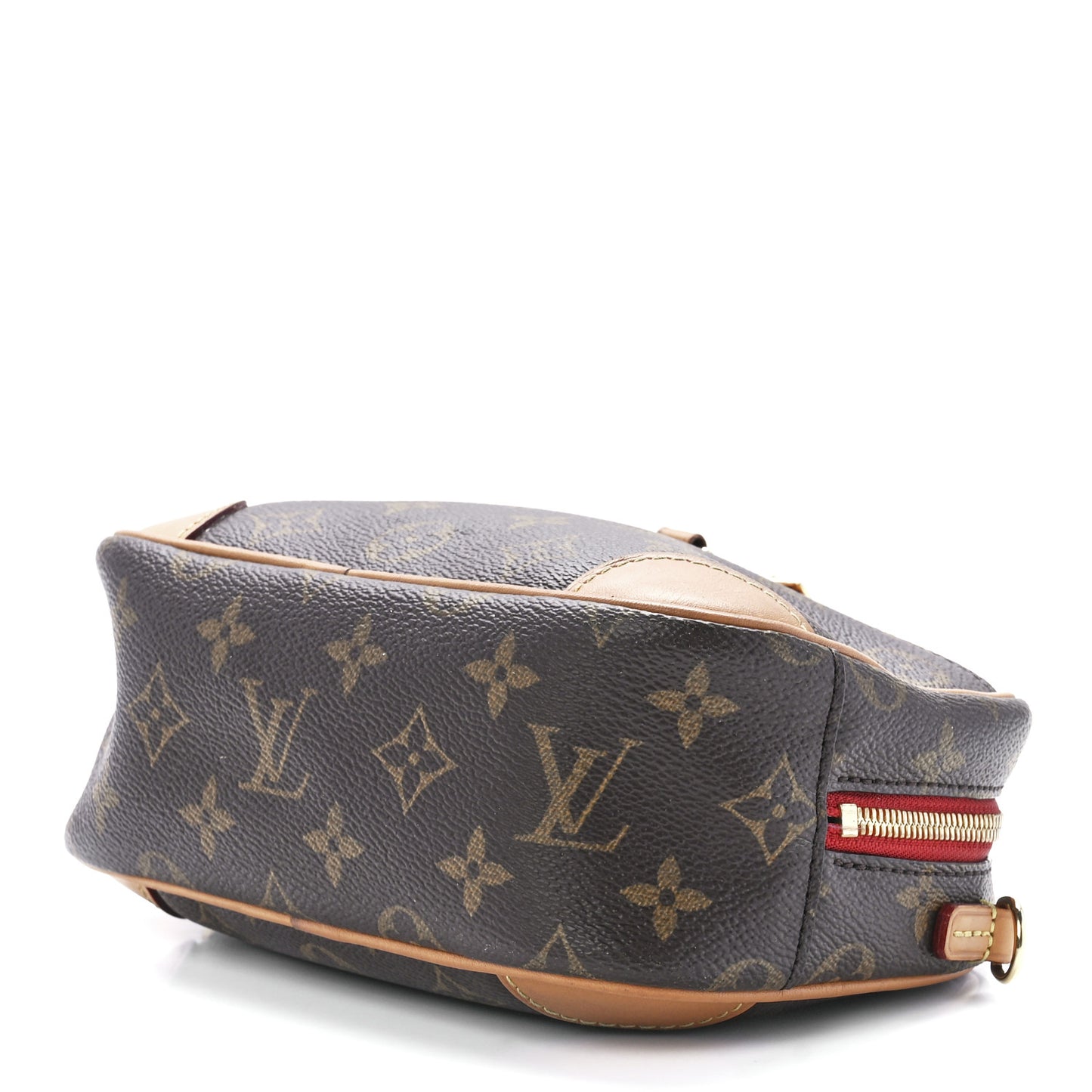 This is an authentic LOUIS VUITTON Monogram Deauville Mini. This classic tote bag is finely crafted of classic Louis Vuitton monogram coated canvas. The bag features a full exterior pocket, vachetta cowhide leather trim and polished brass hardware. The double wrap-around zipper opens to a burgundy fabric interior with a pocket.