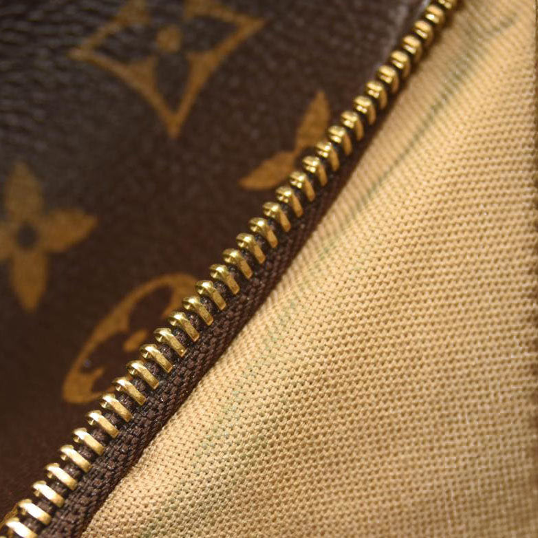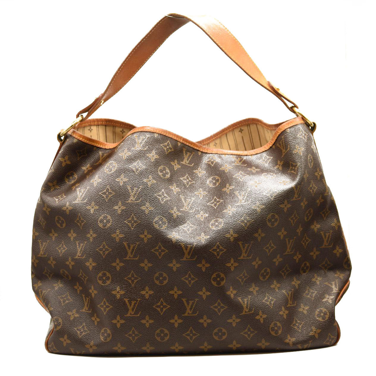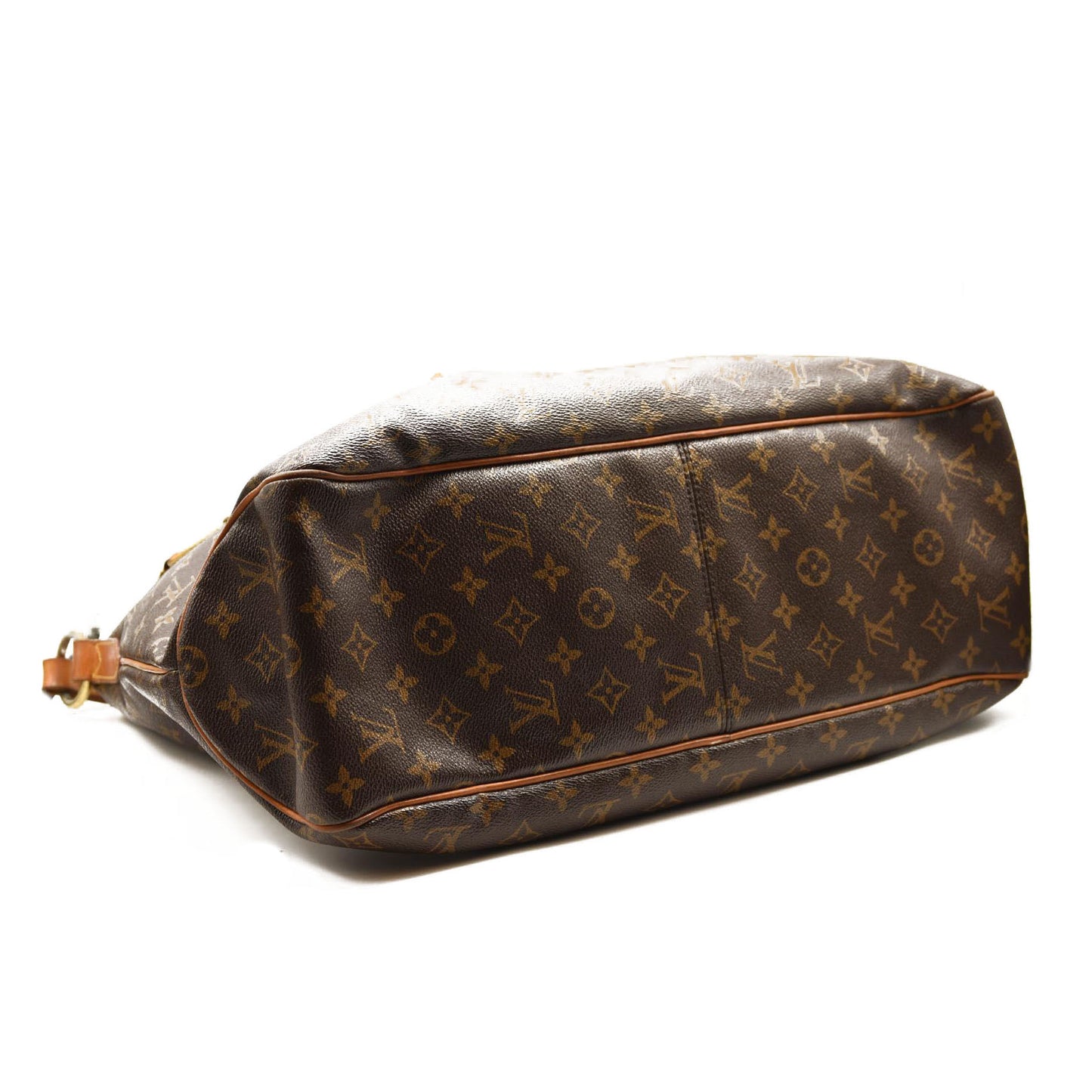 This is an authentic LOUIS VUITTON Monogram Delightful GM. This stylish tote is finely crafted of classic Louis Vuitton monogram coated canvas. This shoulder bag features a looping vachetta cowhide leather shoulder strap and trim, diagonal zipper pockets on the front, and polished brass hardware. The shoulder bag opens to a brown on beige striped fabric interior with a zippered pocket.