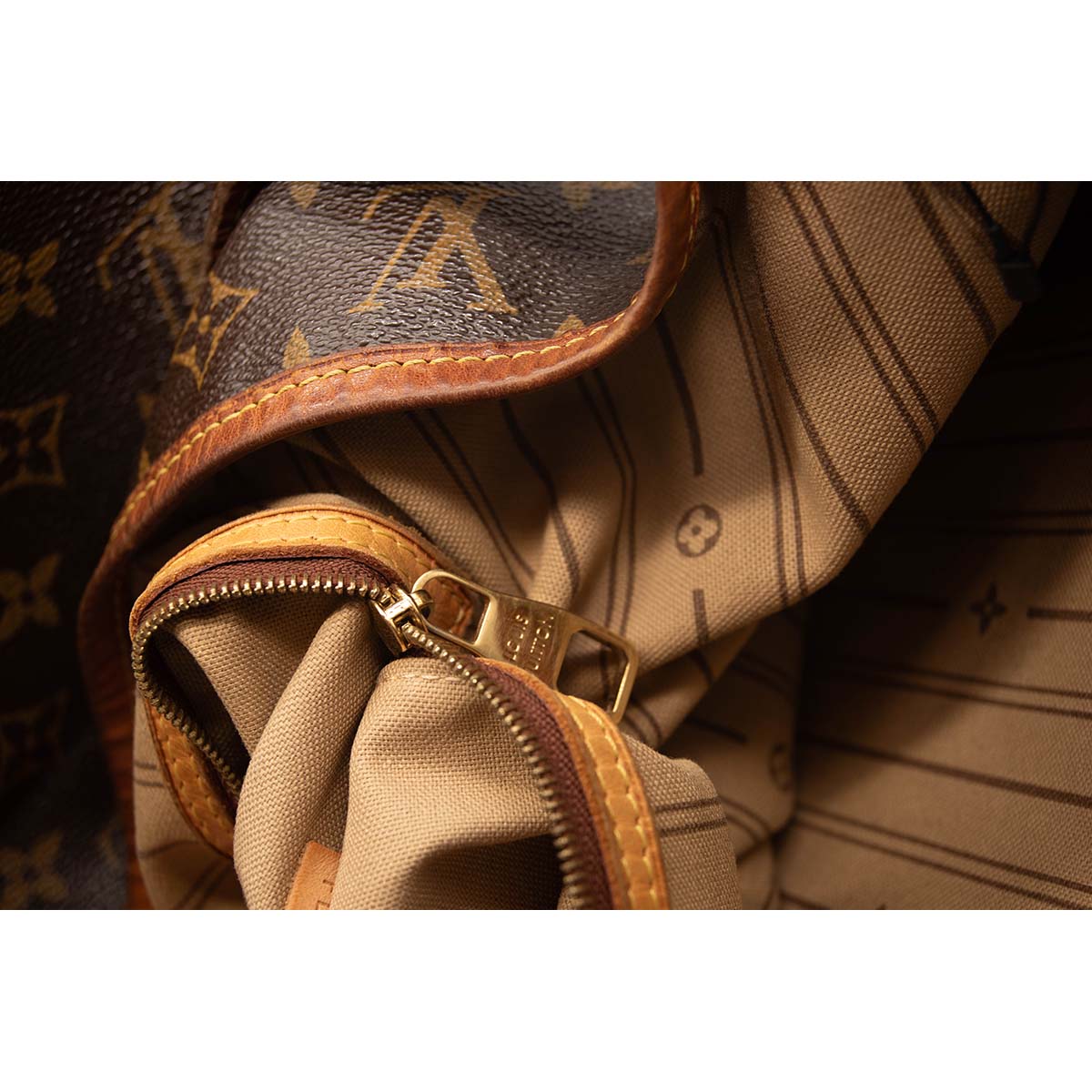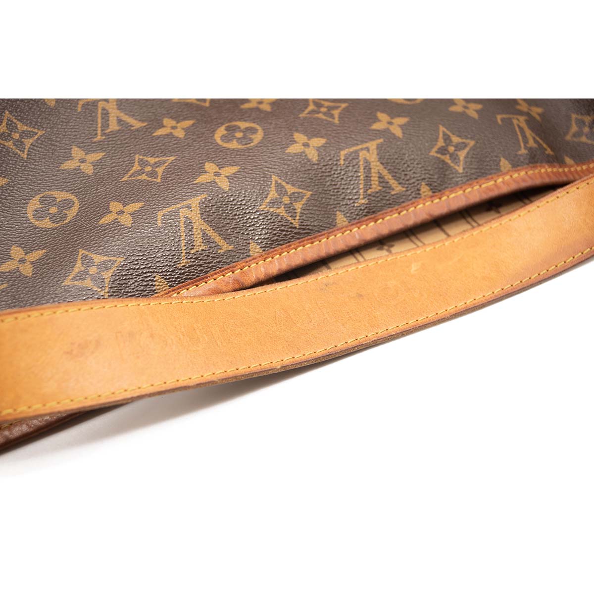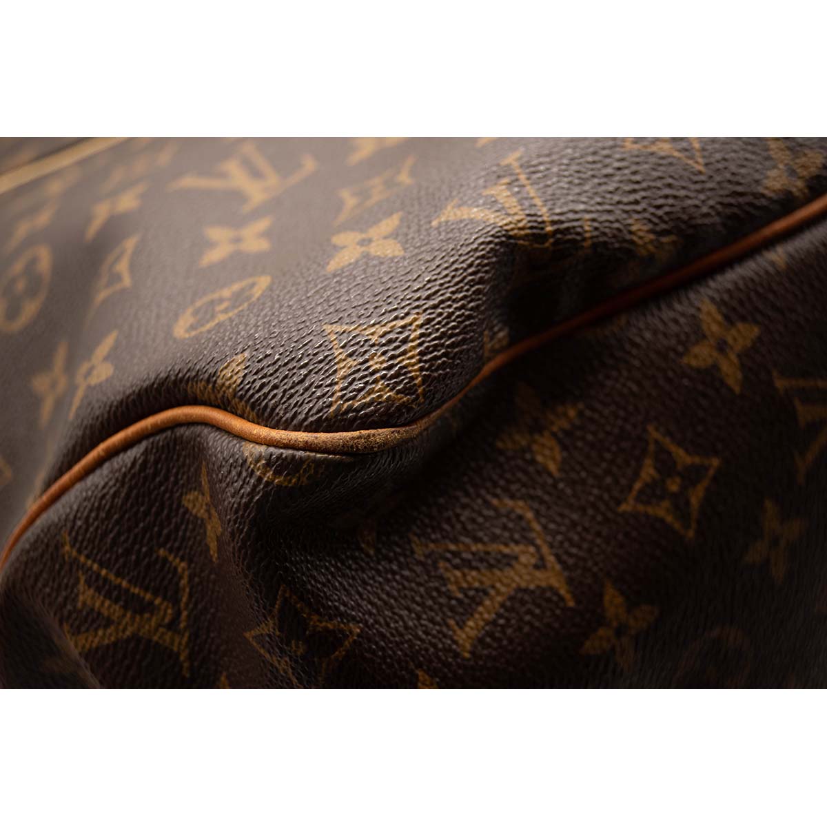 This is an authentic LOUIS VUITTON Monogram Delightful GM. This stylish tote is finely crafted of classic Louis Vuitton monogram coated canvas. This shoulder bag features a looping vachetta cowhide leather shoulder strap and trim, diagonal zipper pockets on the front, and polished brass hardware. The shoulder bag opens to a brown on beige striped fabric interior with a zippered pocket.