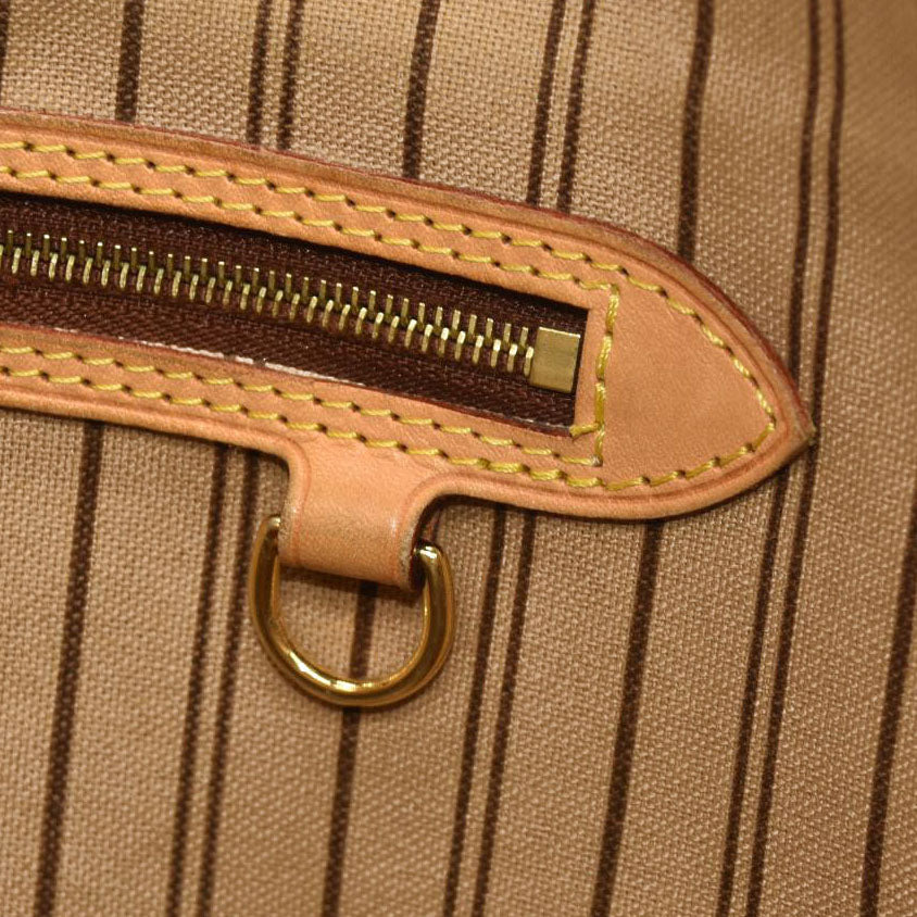 This is an authentic LOUIS VUITTON Monogram Delightful MM. This stylish tote bag is crafted of signature Louis Vuitton monogram coated canvas. This shoulder bag features a thick looping vachetta leather shoulder strap, piping, and side trim with polished gold hardware. The top is open to a beige striped fabric interior with a zipper pocket.