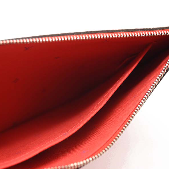 This is an authentic LOUIS VUITTON Monogram Escale Neverfull MM GM Pochette in Red. This chic pochette is crafted of Louis Vuitton monogram on multicolored cascading toile coated canvas. This pochette features an optional red leather wristlet strap and a polished silver top zipper that opens to a red mini monogram printed fabric interior with a flat pocket. This is an ideal case for cosmetics and accessories, with the luxury and style from Louis Vuitton!