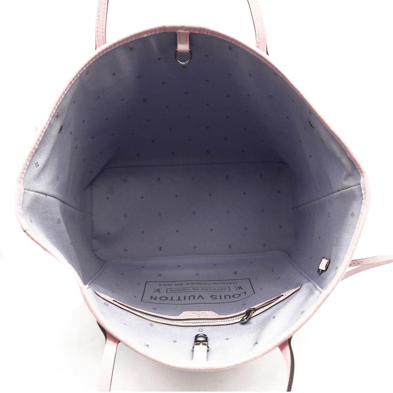 This is an authentic LOUIS VUITTON Monogram Escale Neverfull MM in Pastel. This limited edition tote features oversized and smaller versions of the classic Louis Vuitton monogram print on pastel tie-dye coated canvas. The bag features pink leather strap handles and side cinch cords with silver hardware. The top is open to a spacious blue mini monogram printed fabric interior with a hanging zipper pocket. This is a gorgeous tote with an exceptional look for a day of play, from Louis Vuitton!