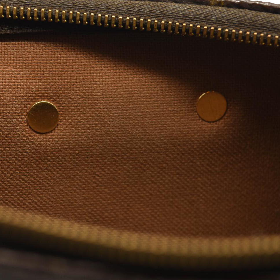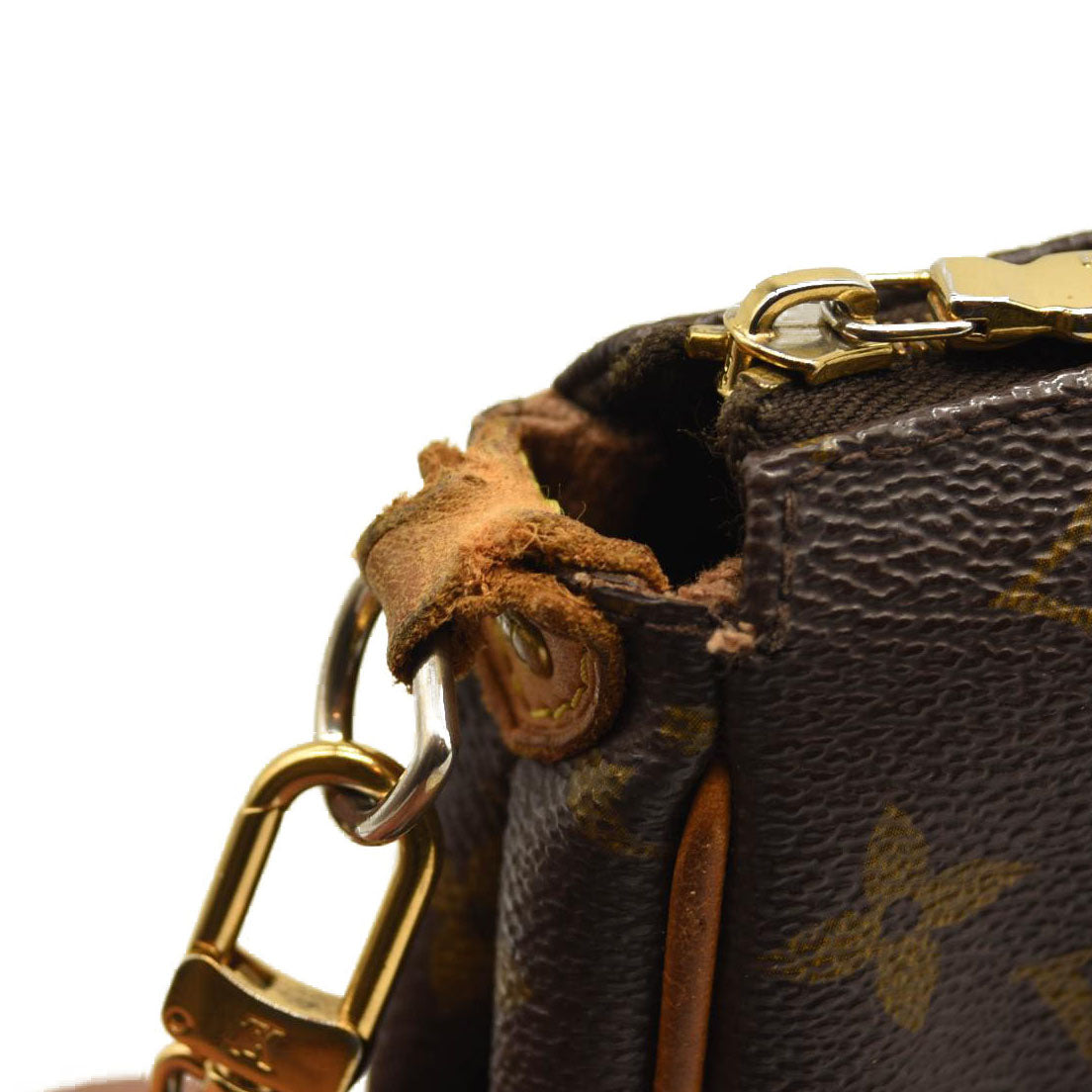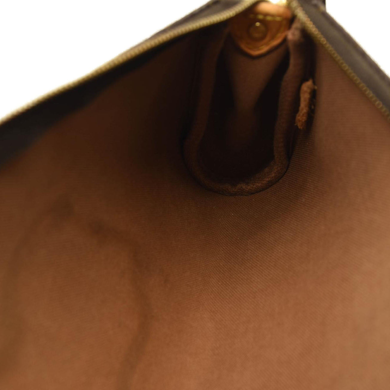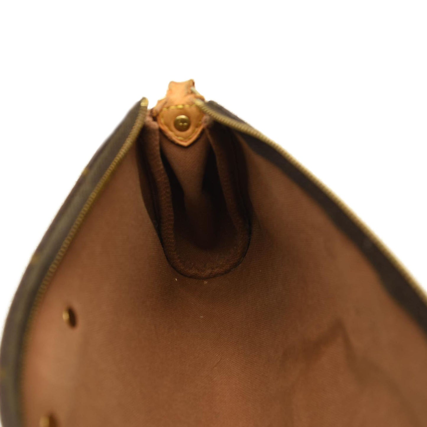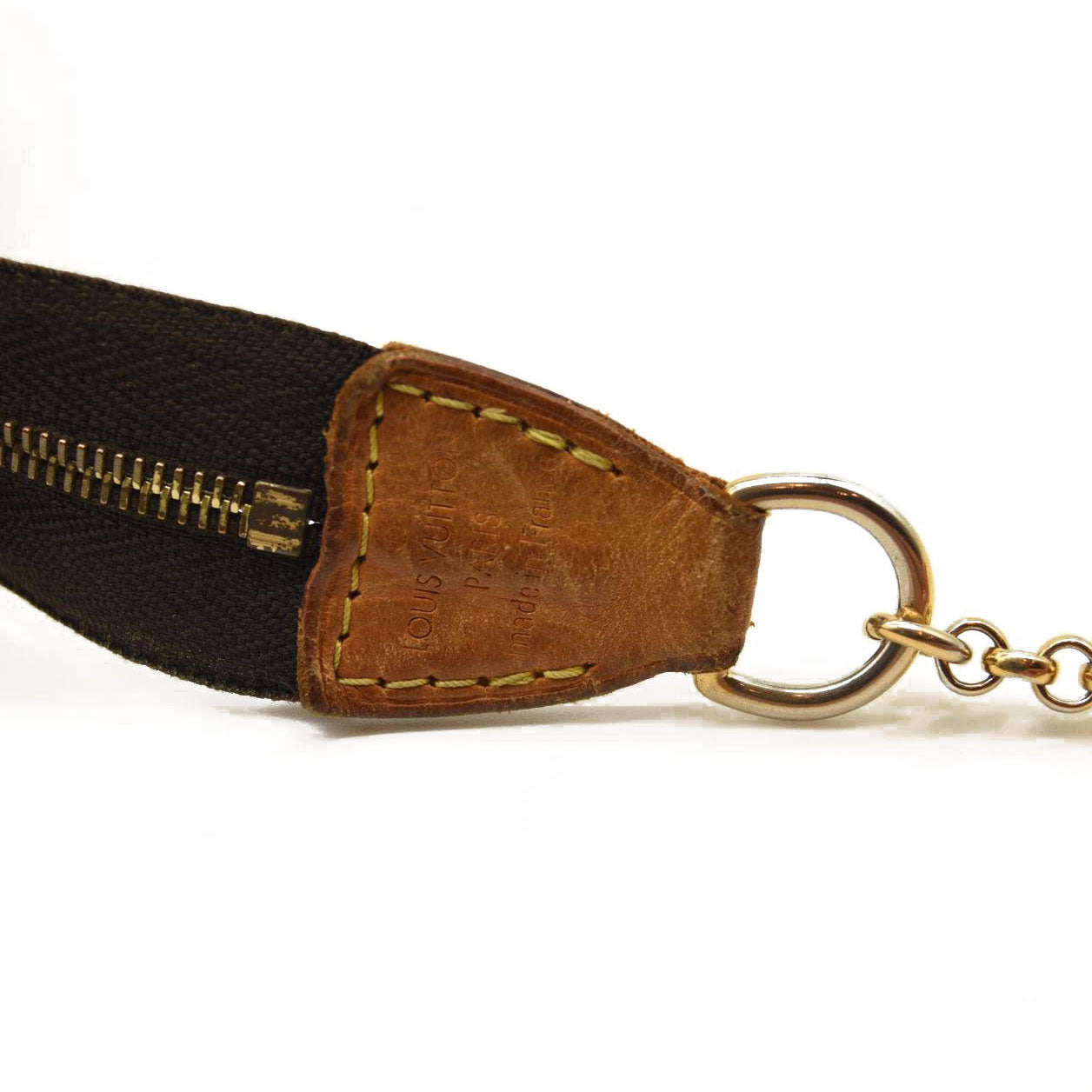 This is an authentic LOUIS VUITTON Monogram Eva Clutch. This stylish and versatile bag is crafted of classic Louis Vuitton monogram coated canvas. This clutch features an elegant polished brass chain-link wristlet strap, vachetta leather trim, and gold hardware. The brass top zipper opens the bag to a compact cocoa brown fabric interior.