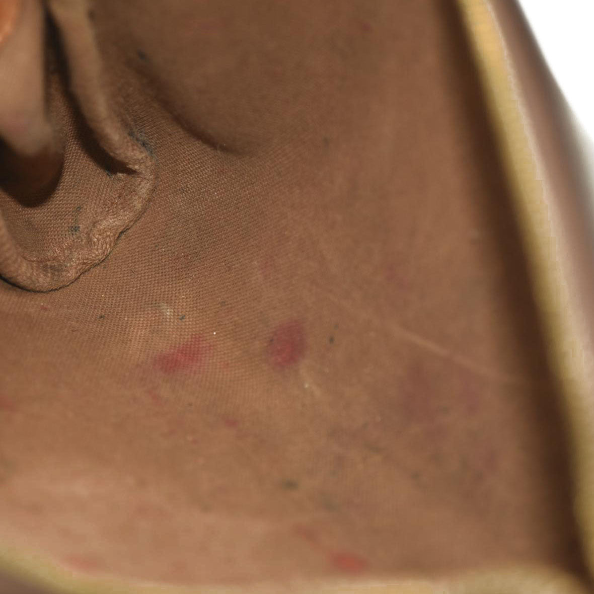 Overall: Pre-owned condition with signs of use. Outside: Slight wrinkles, Slight abrasion, Some scratches, Faded, Some soiled, Slight cracking. Inside: Soiled, Scratches. Outside pockets: - Inside pockets: - Shoulder strap: Wrinkles, Faded, Slight abrasion, Some soiled. Chain strap: Abrasion, Some scratches. Corners: Faded, Slight scratches, Slight abrasion. The corners of the opening have slight cracking. Snaps, Zippers, and Hardware: Abrasion, Scratches. Leather tag is faded, soiled, and has few abrasions. The leather loop surrounding the D-ring is faded, soiled, and abraded.