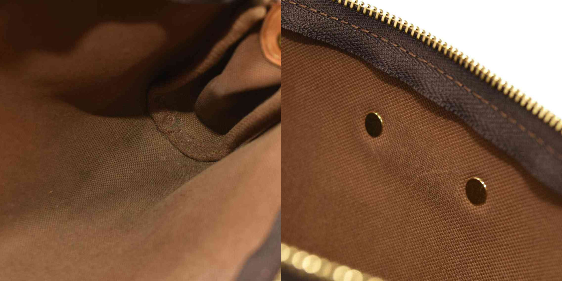 Exterior: Structure wear, surface wear, faint marks, patina of vachetta, dark marks on leather
