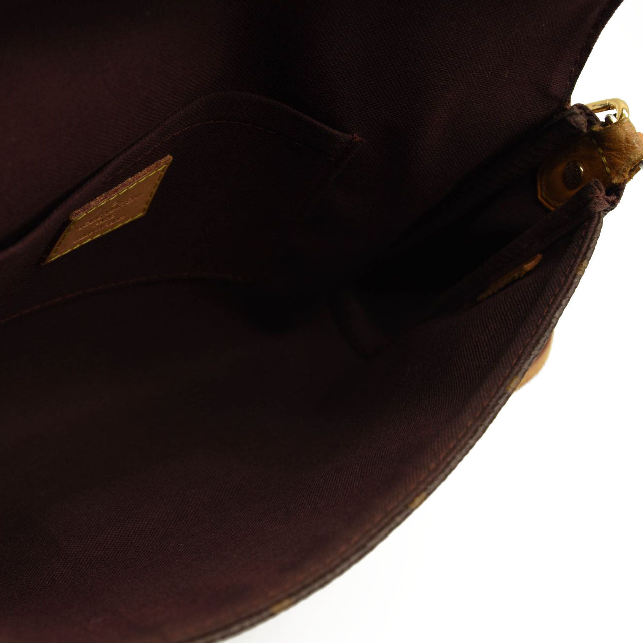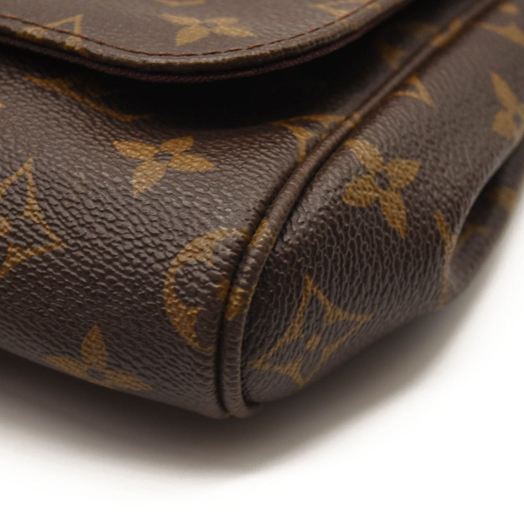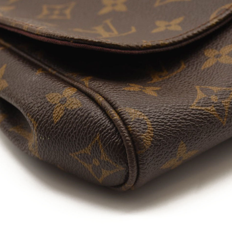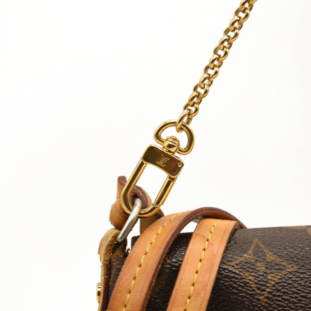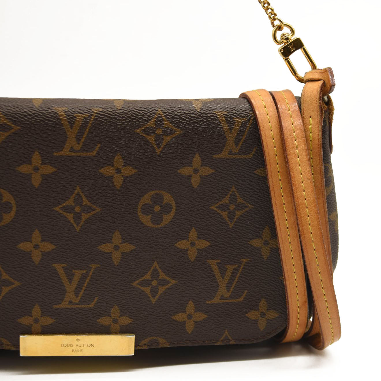 This is an authentic LOUIS VUITTON Monogram Favorite MM. This stylish bag is crafted of a durable monogram toile canvas with a polished gold chain strap and an optional vachetta leather shoulder strap. The crossover flap opens with a magnetic gold bar to a purple fabric interior with a patch pocket.