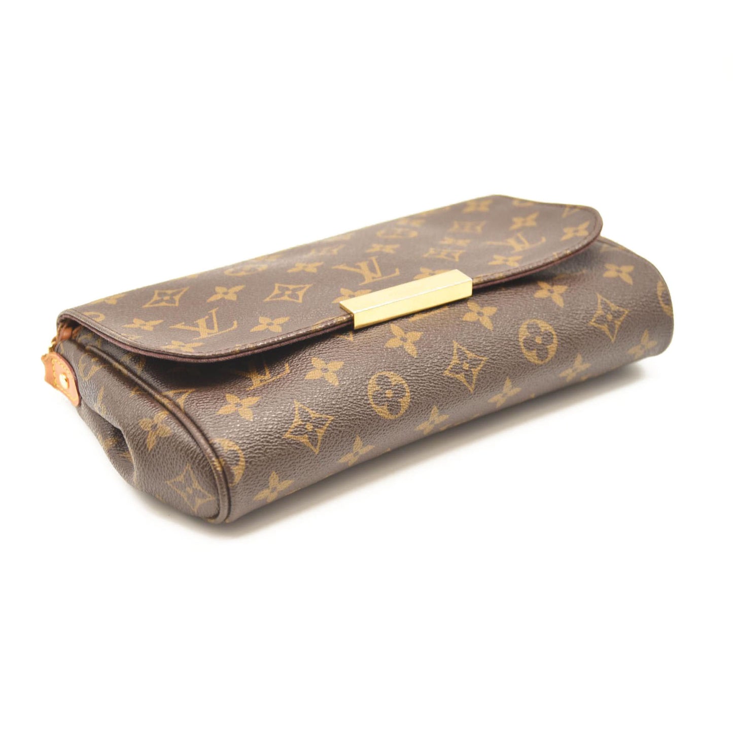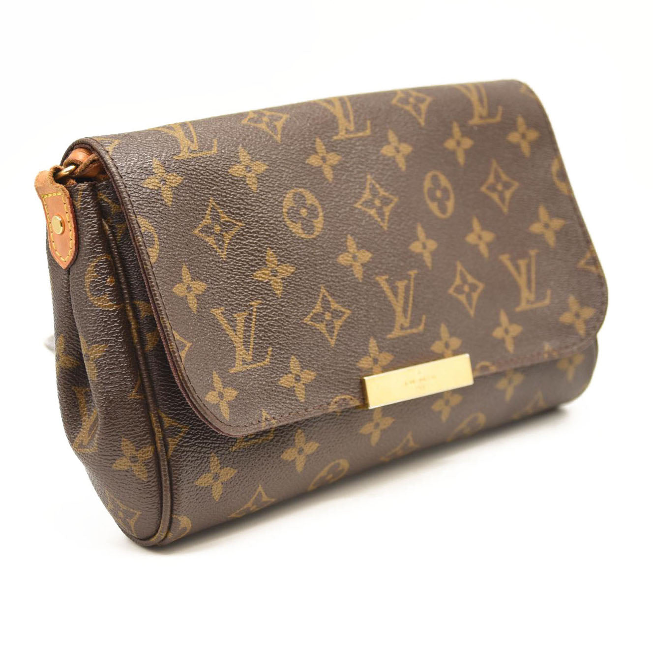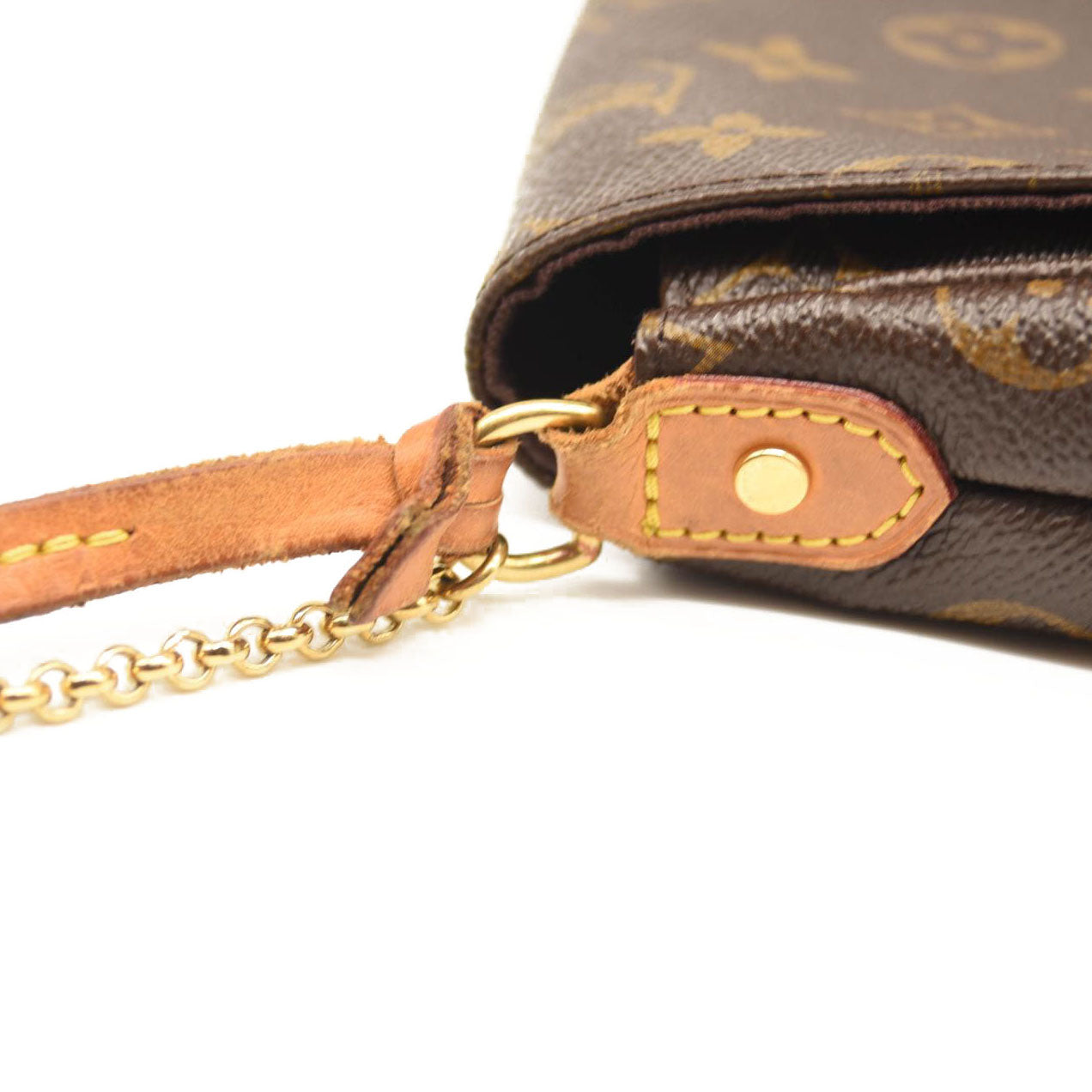 This is an authentic LOUIS VUITTON Monogram Favorite MM. This stylish wrist bag is crafted of Louis Vuitton monogram coated canvas. The bag features a short gold chain end to end wrist strap and a cross over flap. This opens to a plum fabric interior. This is an excellent baguette, ideal for everyday essentials, from Louis Vuitton!