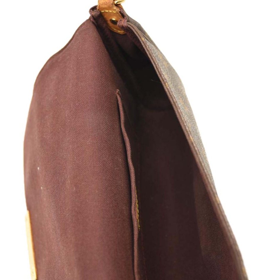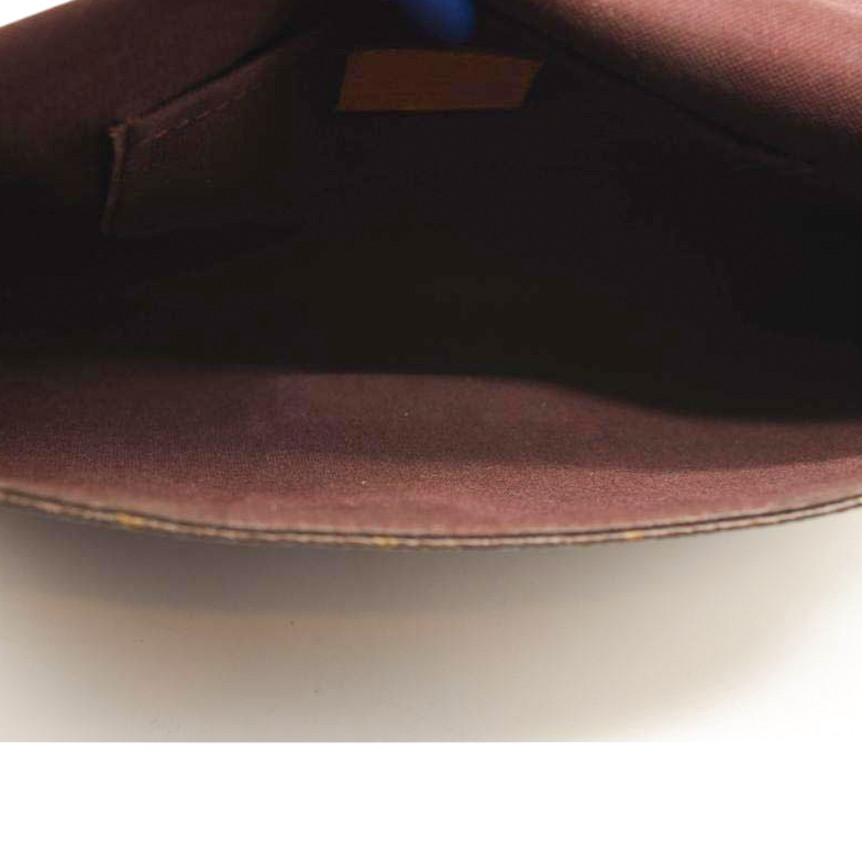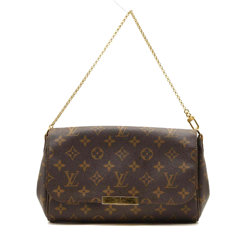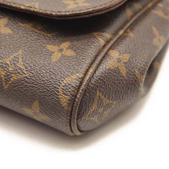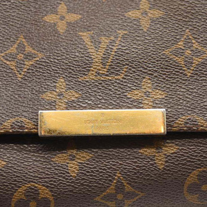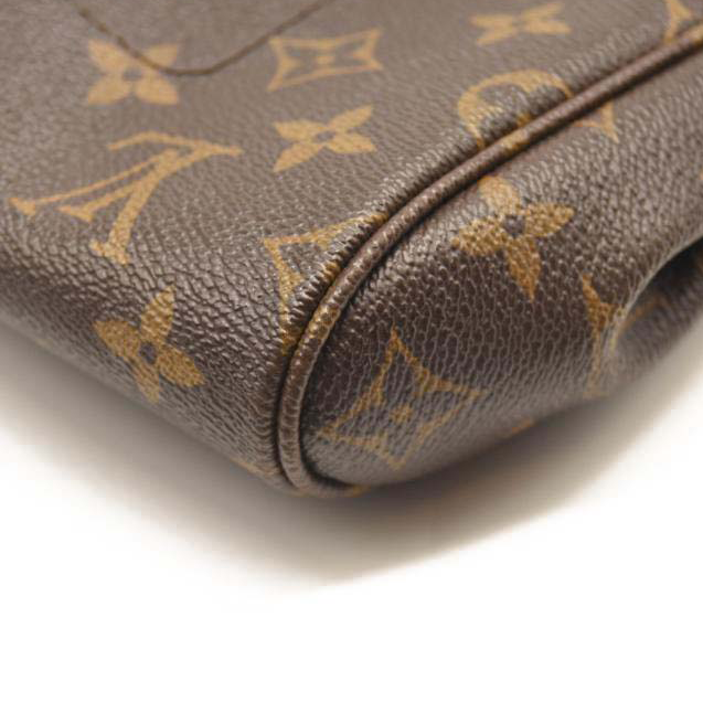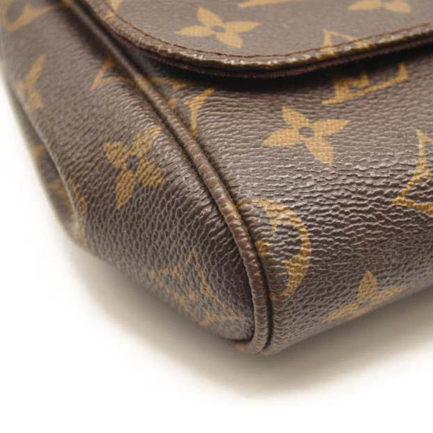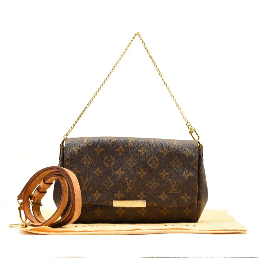 This is an authentic LOUIS VUITTON Monogram Favorite MM. This stylish bag is crafted of a durable monogram toile canvas with a polished brass chain strap. The crossover flap opens with a magnetic brass bar to a purple fabric interior with a patch pocket.