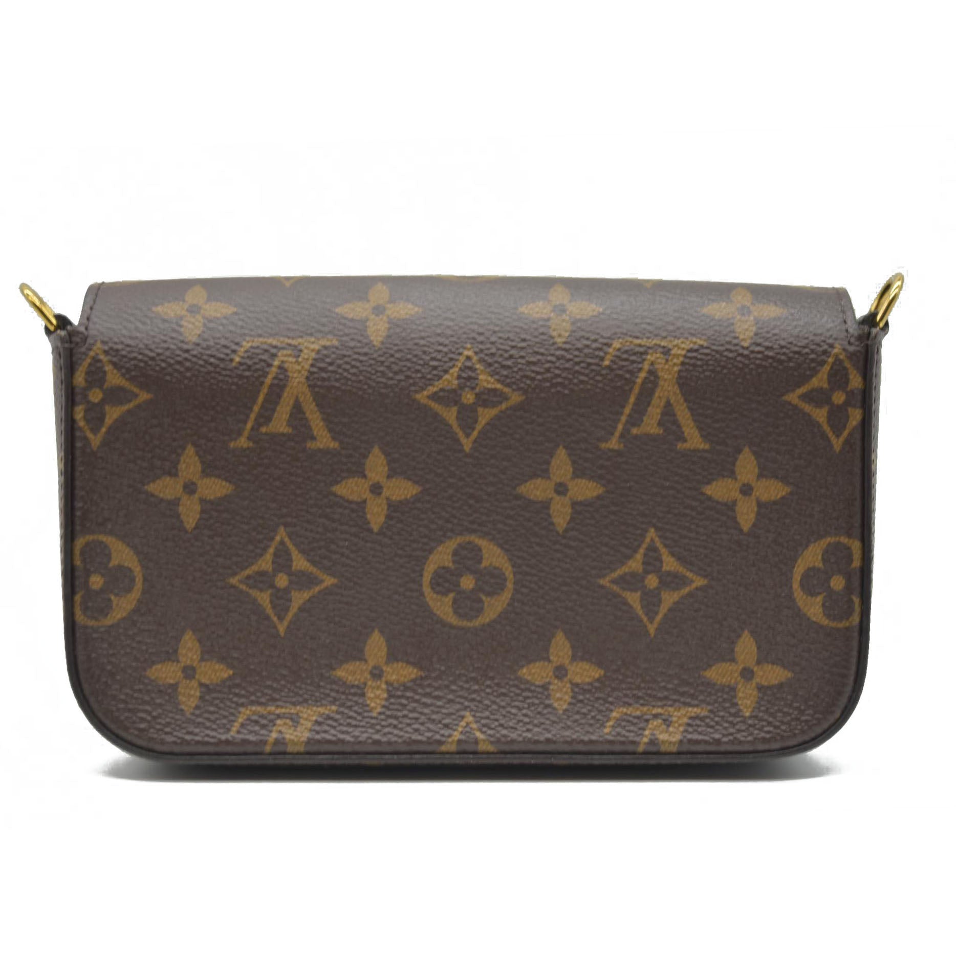 This is an authentic LOUIS VUITTON Monogram Felicie Strap & Go in Kaki. This chic crossbody bag is crafted of monogram coated canvas and features a removable khaki canvas strap and gold hardware. The top zipper opens to a brown fabric interior with a flat pocket. Enjoy this fashion-forward bag only from Louis Vuitton!