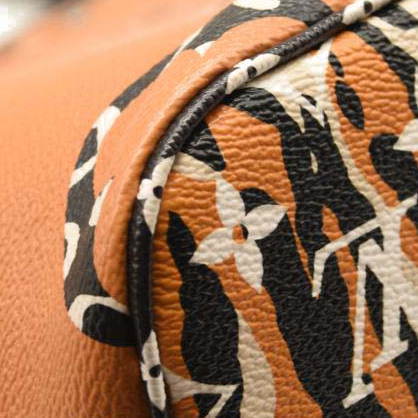 This is an authentic LOUIS VUITTON Monogram Giant Jungle Neverfull MM in Ivory. This limited edition tote features oversized and smaller sized versions of the classic Louis Vuitton monogram in an animal print with an ivory and orange coated canvas background. The bag features black and white monogrammed printed strap handles. The top opens to a spacious beige striped fabric interior with a hanging zipper pocket.