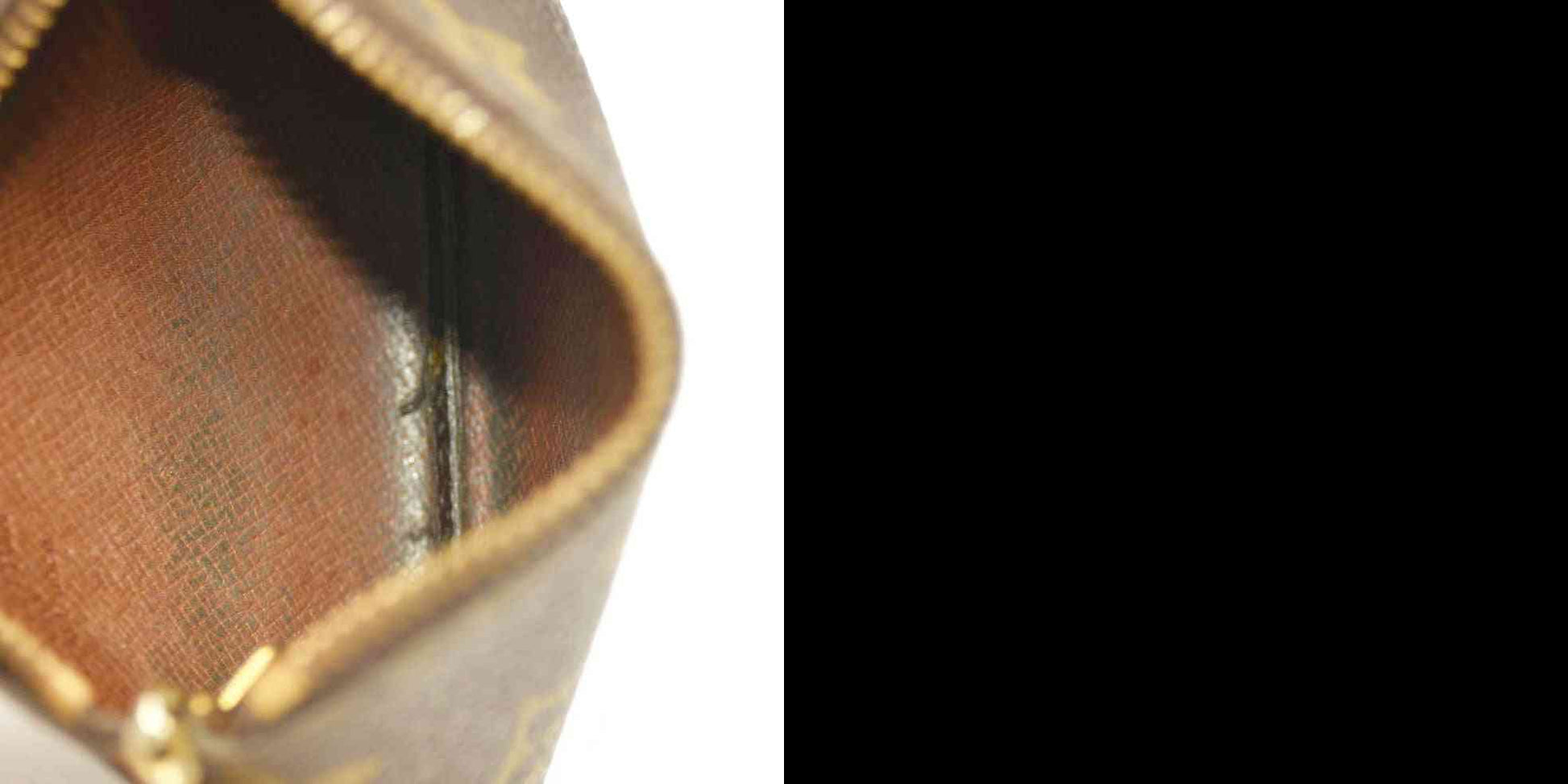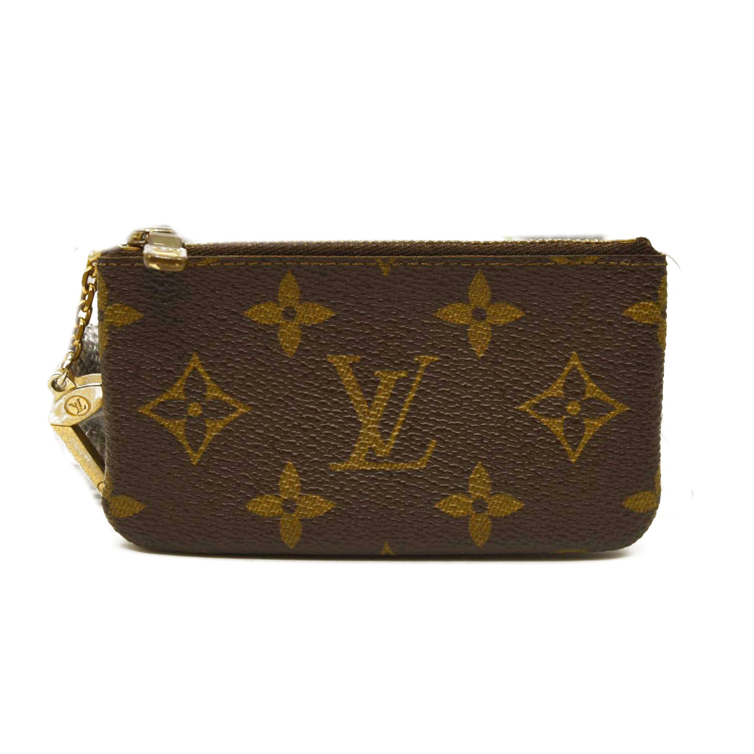 This is an authentic LOUIS VUITTON Monogram Key Pouch. This pouch is crafted of Louis Vuitton monogram coated canvas in brown. The top zipper opens to a brown crossgrain leather interior with an attached brass clasp that can be clipped to your keys or handbag.