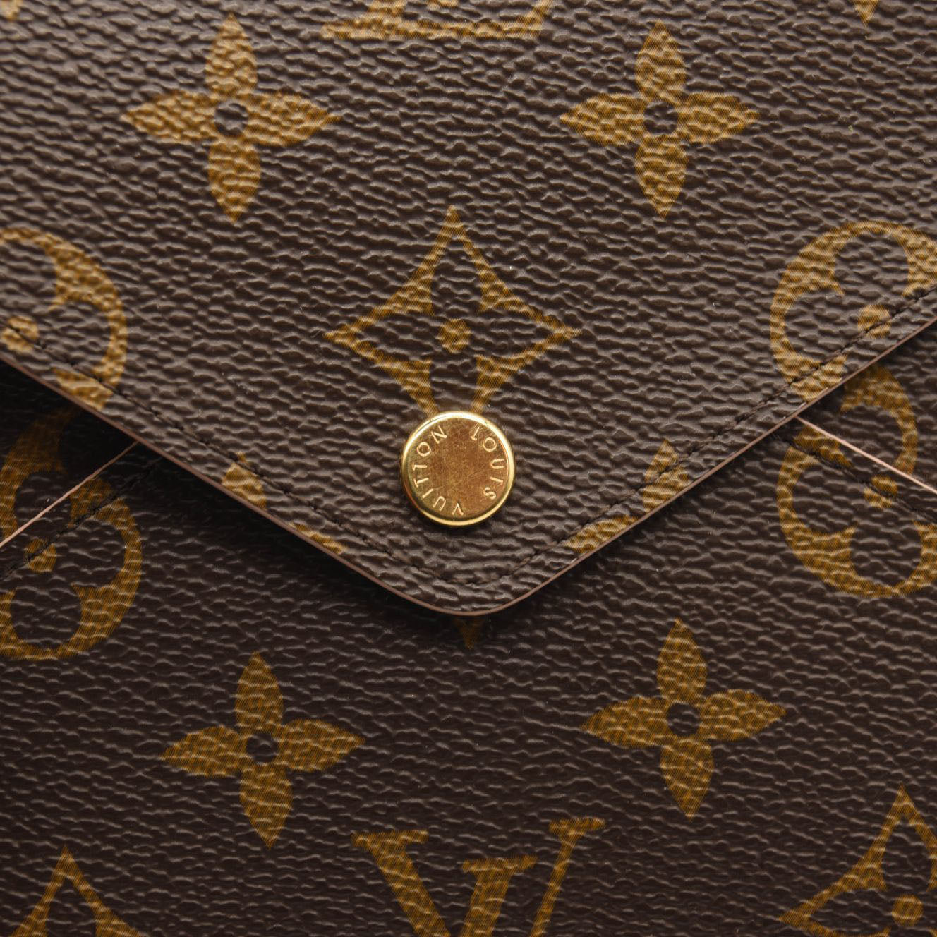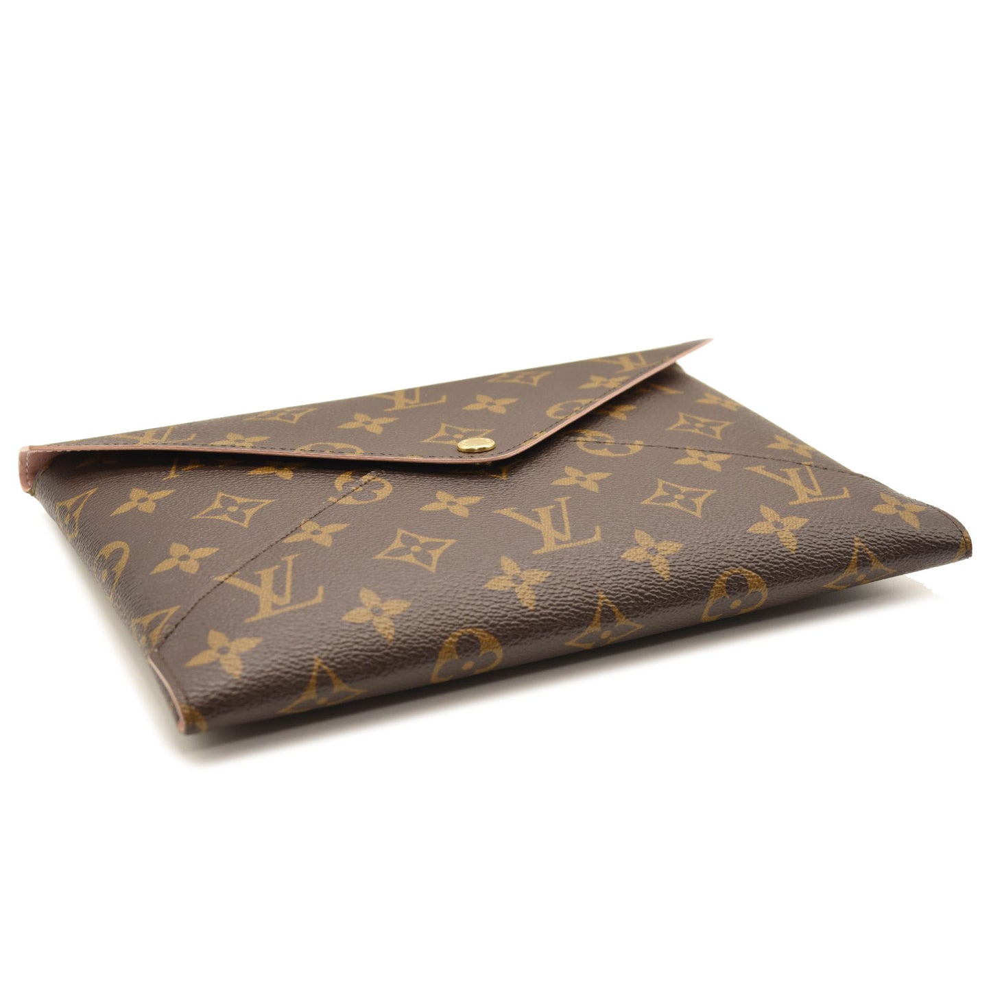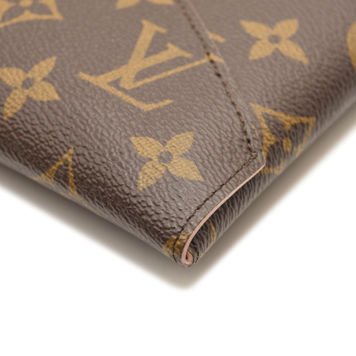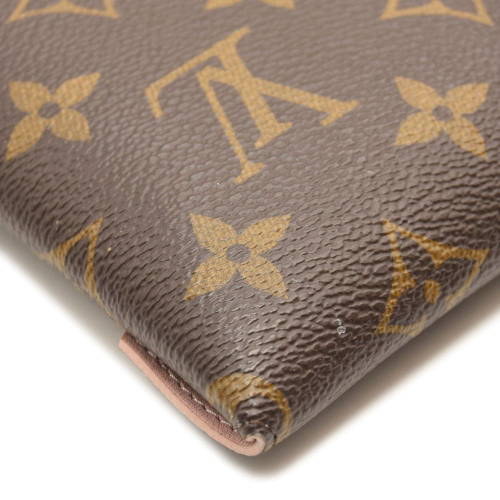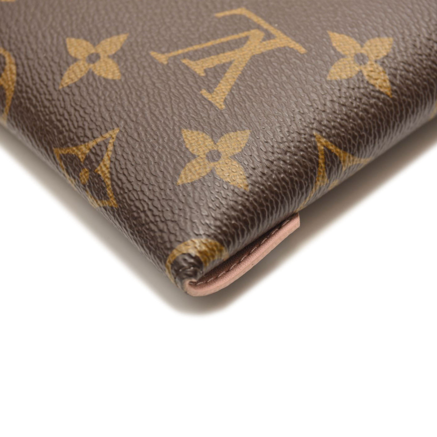 This is an authentic LOUIS VUITTON Monogram Kirigami Pochette Large. This chic pouch is crafted of Louis Vuitton monogram on toile canvas. Opens with polished brass snap to light pink rose ballerine interior