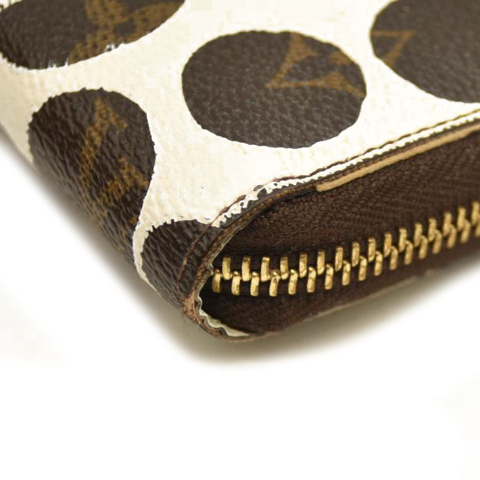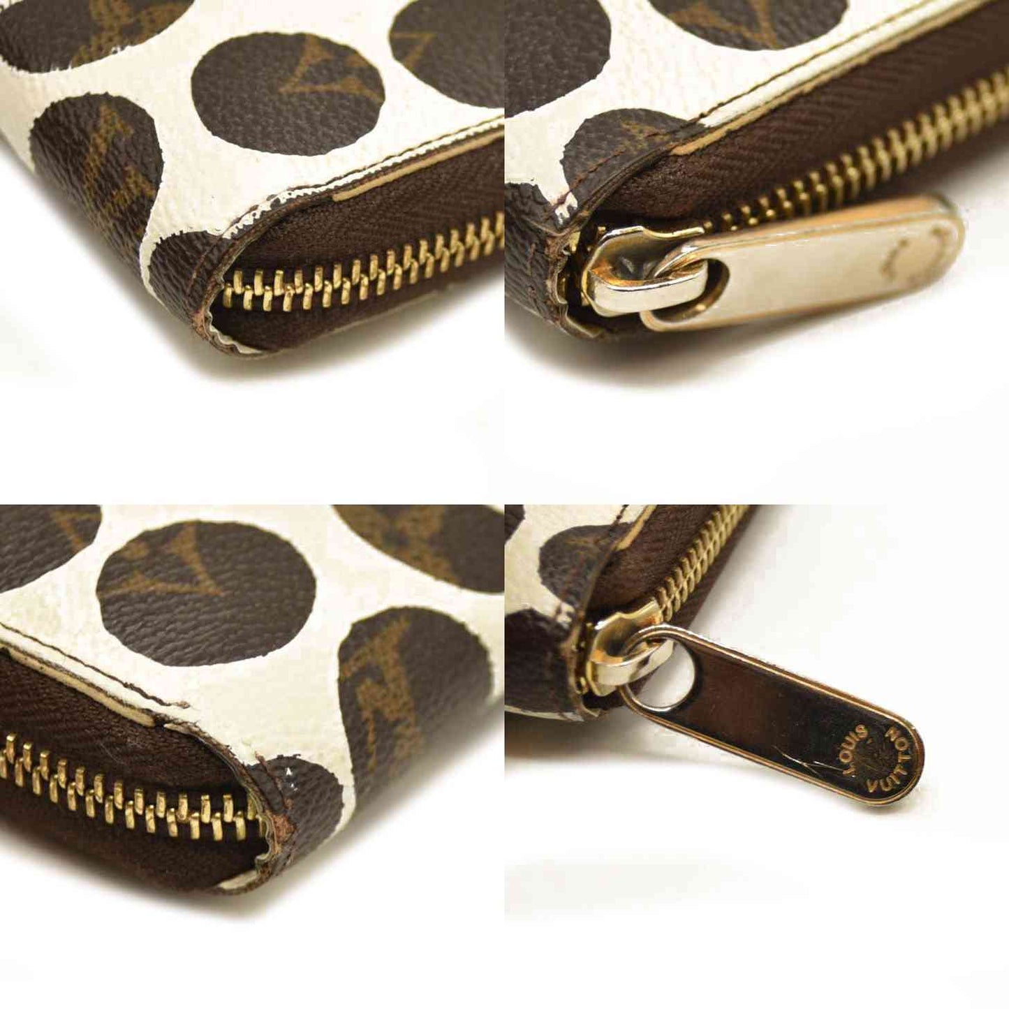 This is an authentic LOUIS VUITTON Monogram Kusama Pumpkin Dots Zippy Wallet in White. This chic wallet is finely crafted of classic Louis Vuitton monogram on coated canvas, in a stylish, abstract "pop art" design on a white background. The wallet features a polished brass wrap-around zipper that opens to a partitioned white crossgrain leather interior with card slots, bill compartments, and central zipper and patch pockets.