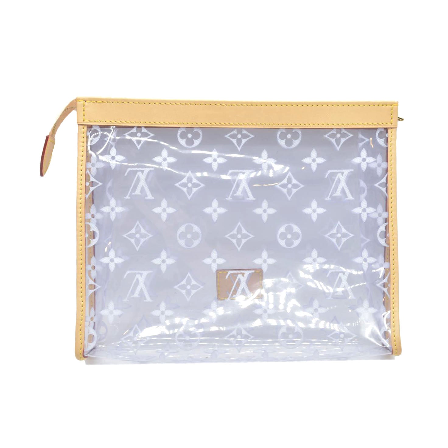 The translucent Poche Toilette is the perfect way to organize belongings inside a travel or city bag. The subtle Monogram print and natural cowhide leather bring style.