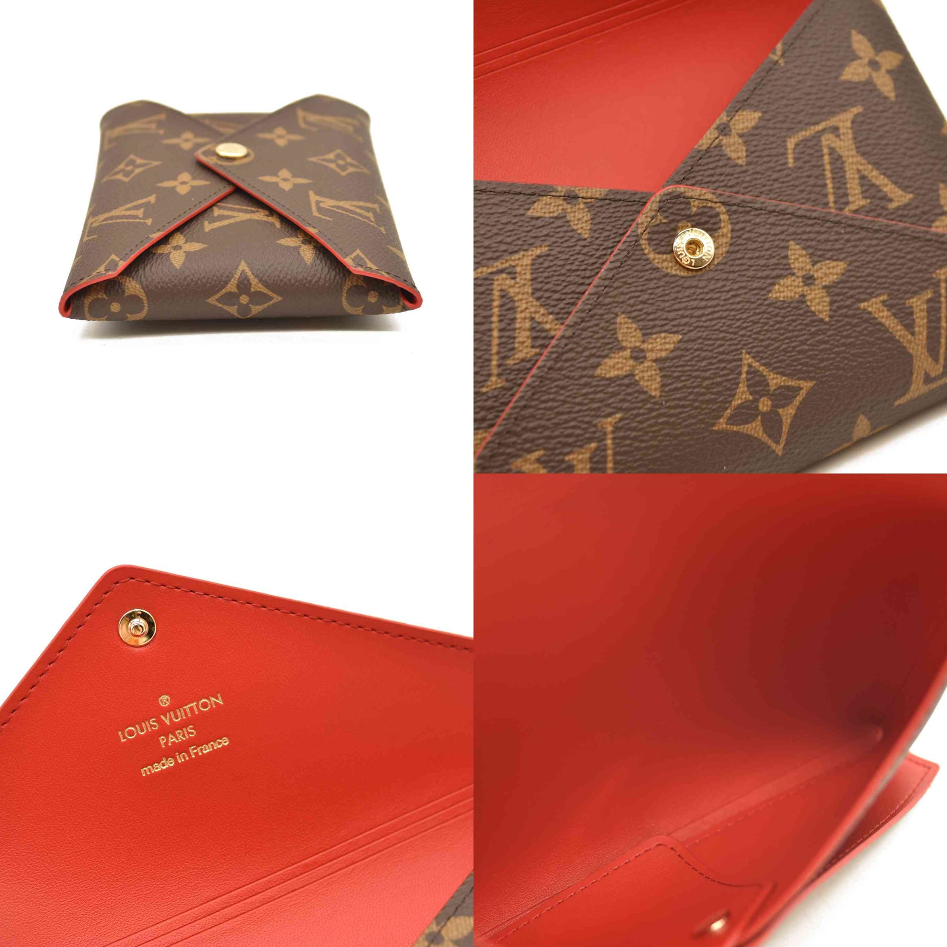 This is an authentic LOUIS VUITTON Monogram Medium Kirigami Pochette Insert. This chic compact pouch is ideal for carrying money, credit cards or passports and is crafted of Louis Vuitton monogram on toile canvas. The purse opens with a flap and a snap to a red smooth leather interior. This is a wonderful compact wallet with the luxury and style only from Louis Vuitton!
