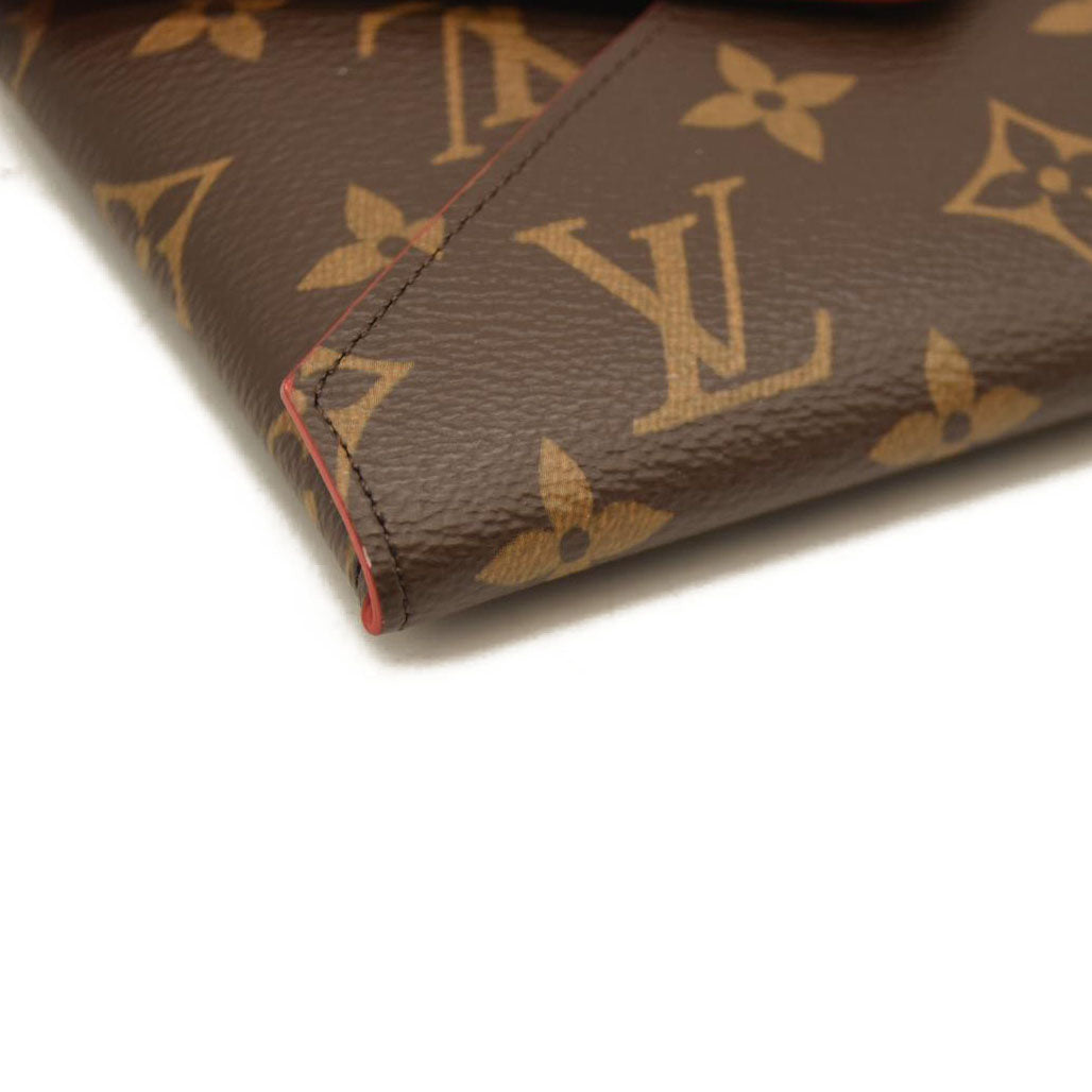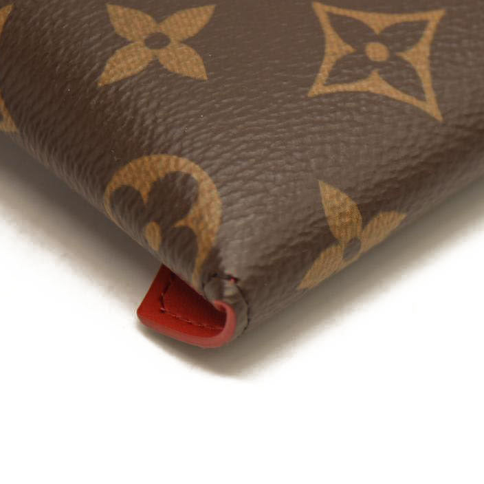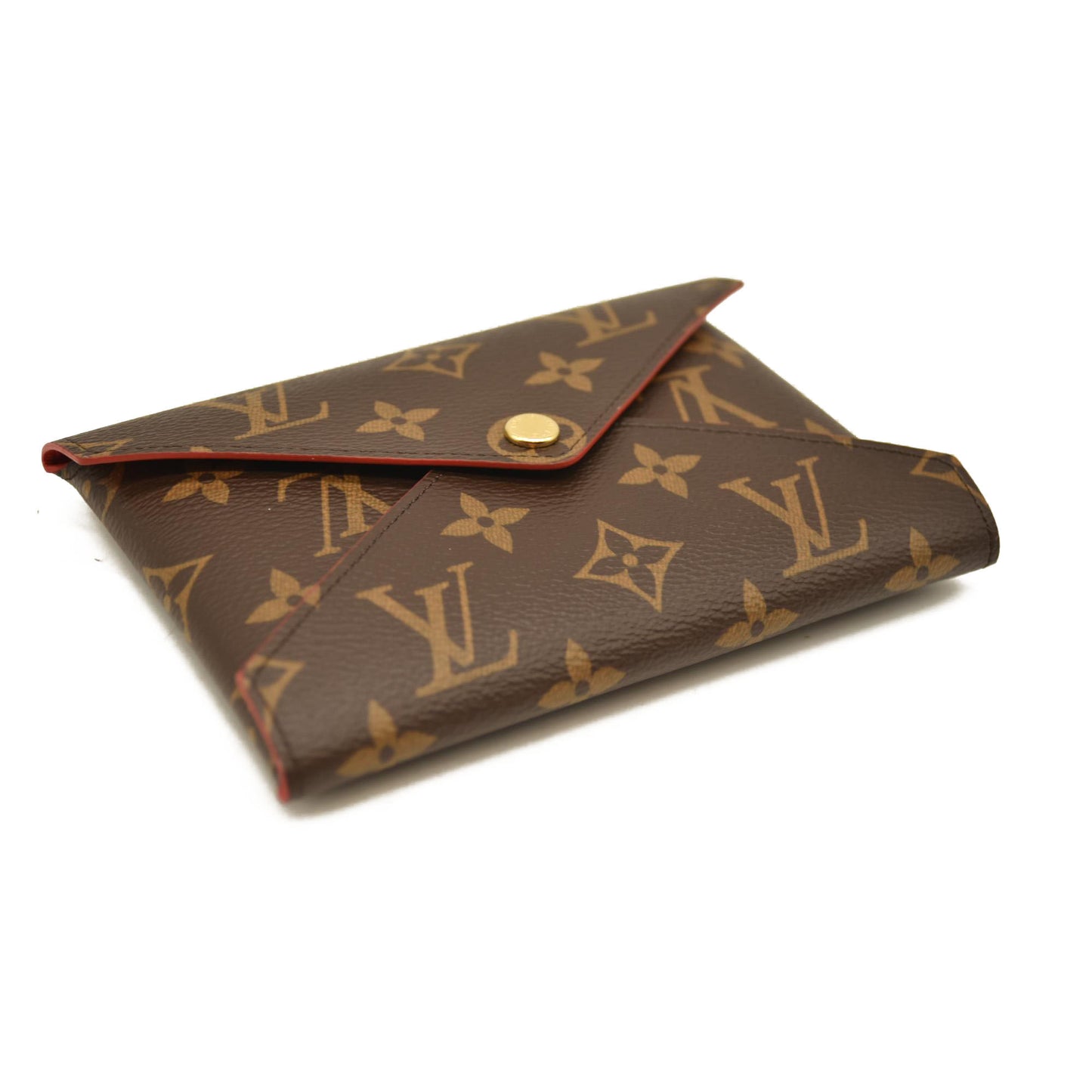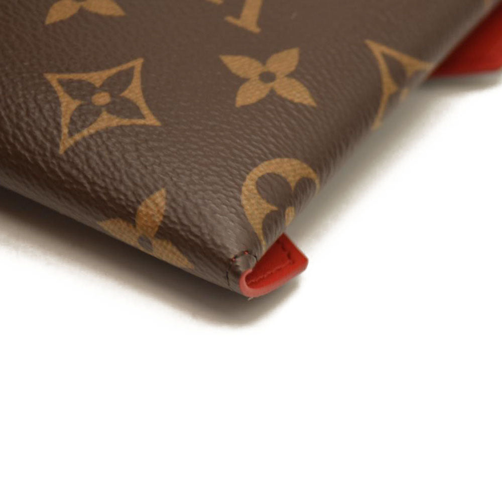 This is an authentic LOUIS VUITTON Monogram Medium Kirigami Pochette Insert. This chic compact pouch is ideal for carrying money, credit cards or passports and is crafted of Louis Vuitton monogram on toile canvas. The purse opens with a flap and a polished gold snap to a red smooth leather interior. This is a wonderful compact wallet with the luxury and style only from Louis Vuitton!