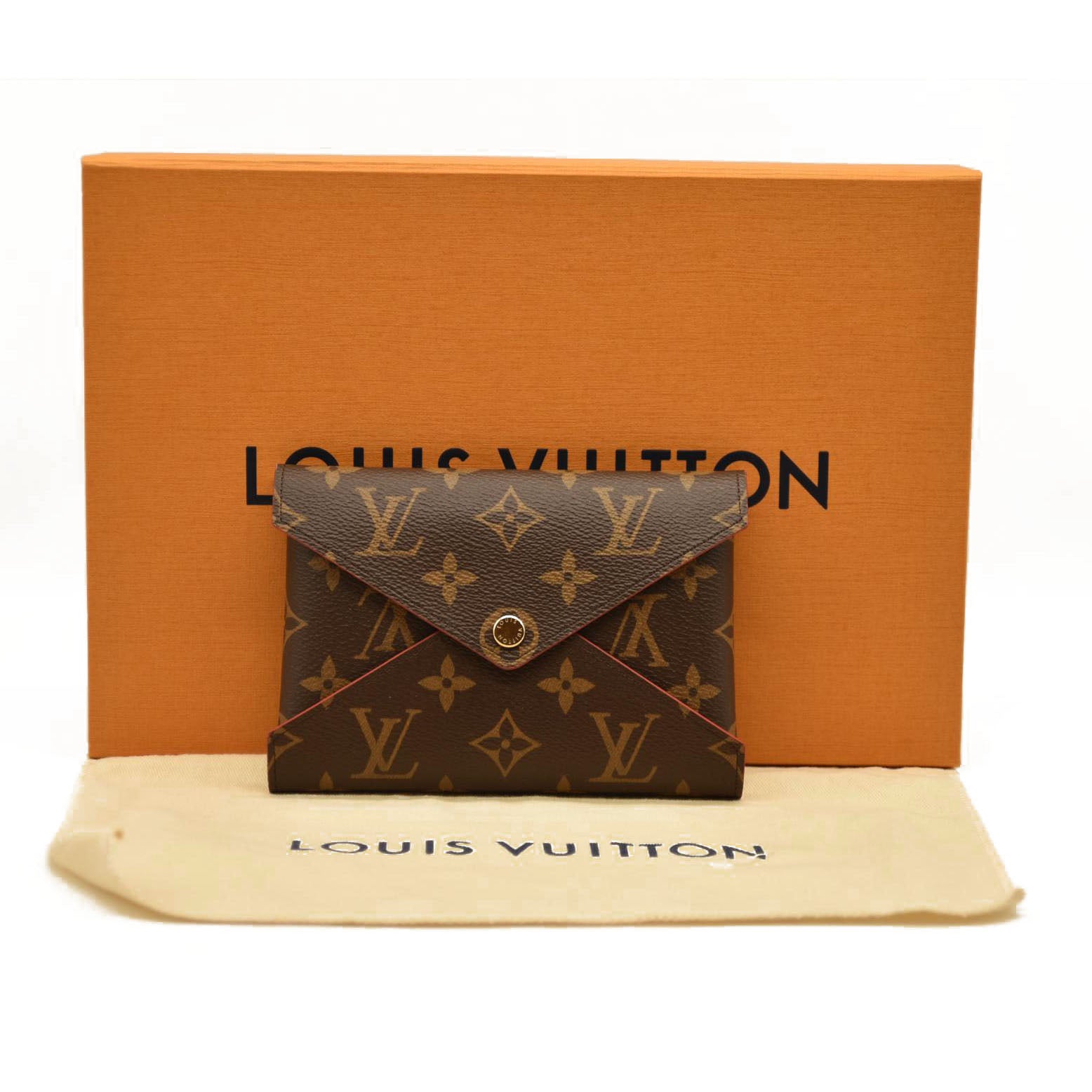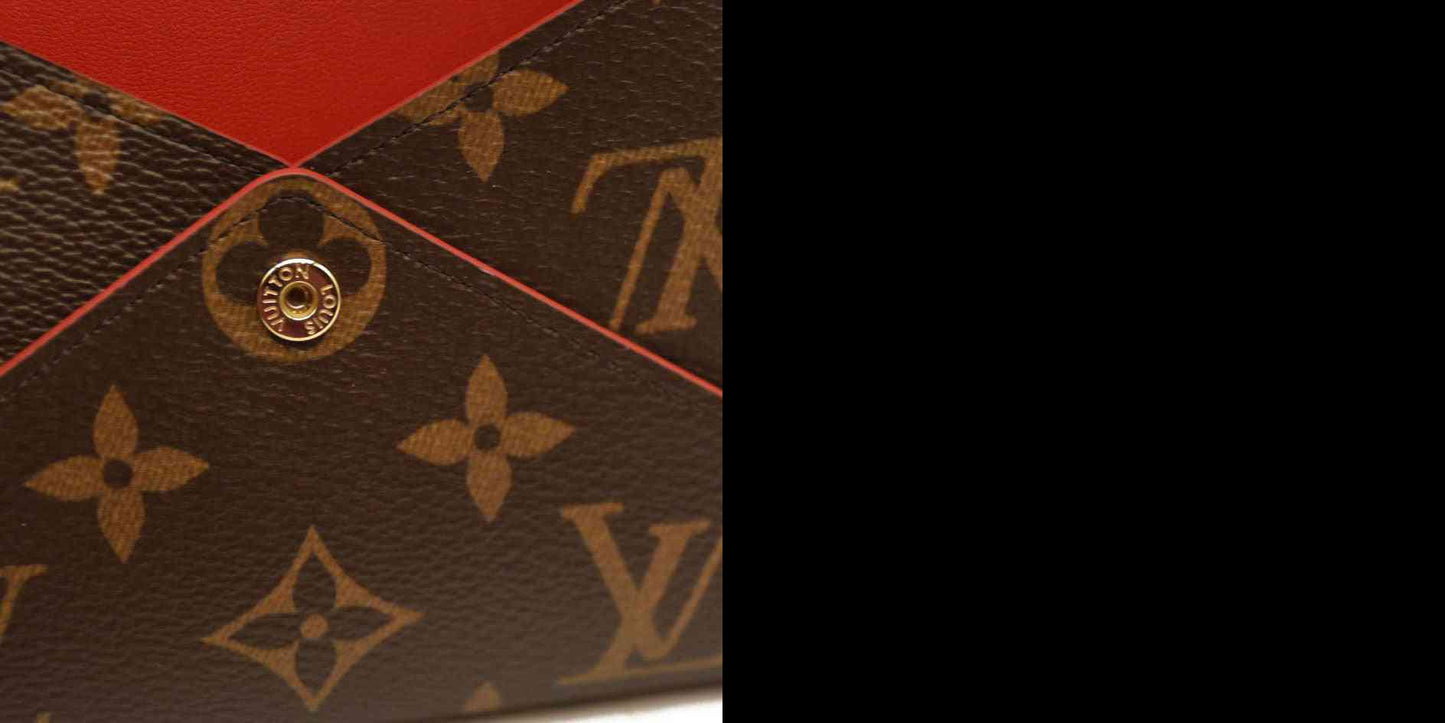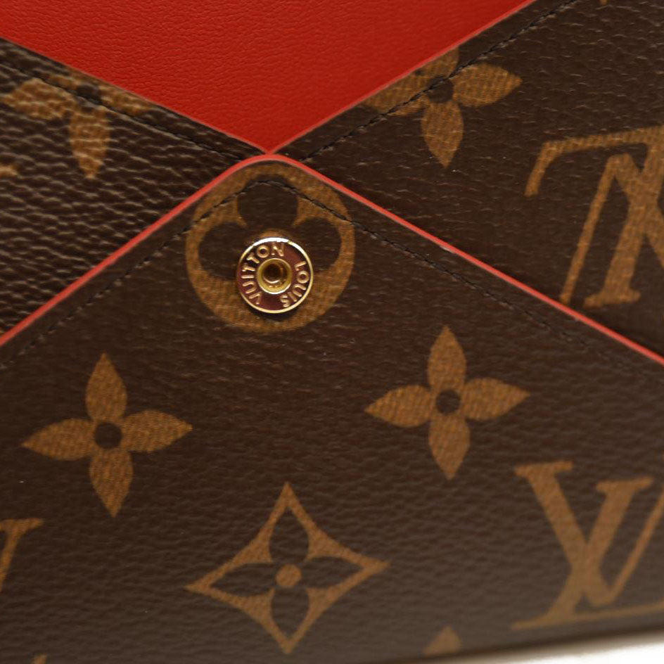 This is an authentic LOUIS VUITTON Monogram Medium Kirigami Pochette Insert. This chic compact pouch is ideal for carrying money, credit cards or passports and is crafted of Louis Vuitton monogram on toile canvas. The purse opens with a flap and a polished gold snap to a red smooth leather interior. This is a wonderful compact wallet with the luxury and style only from Louis Vuitton!