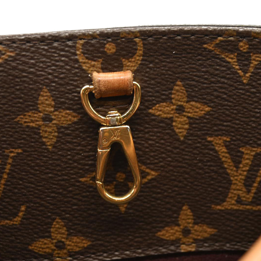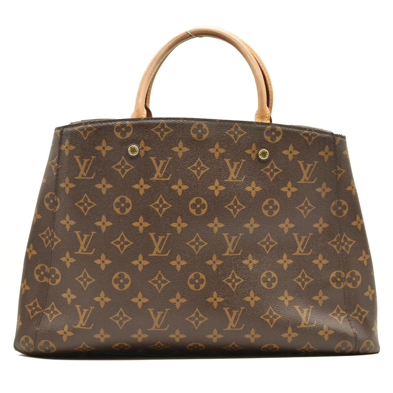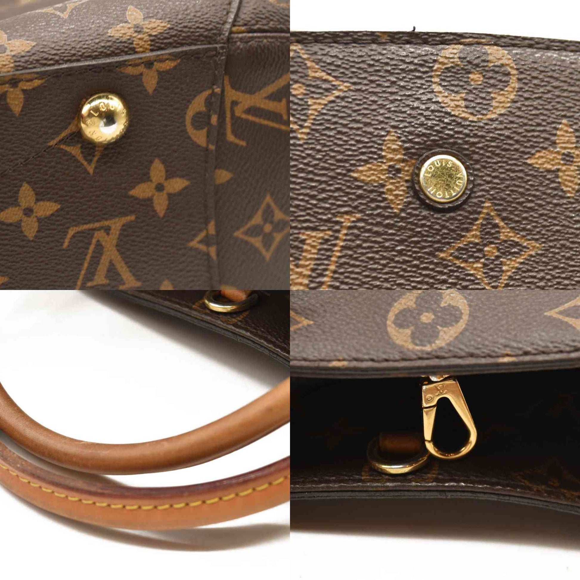 This is an authentic LOUIS VUITTON Monogram Montaigne GM. This chic tote is crafted of Louis Vuitton monogram toile canvas. The bag features rolled vachetta leather top handles, an optional toile canvas shoulder strap, and gold hardware. The top is open to a partitioned plum purple microfiber interior with zipper and patch pockets.