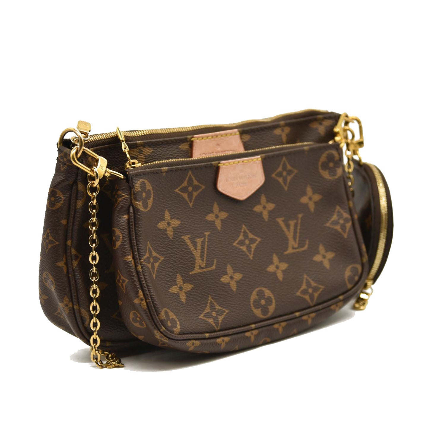 This is an authentic LOUIS VUITTON Monogram Multi Pochette Accessories Kaki. This hybrid cross-body bag is crafted in monogram and mini monogram canvas in brown. It features a pochette accessoires, a mini pochette accessoires and a round coin purse. It has both a removable gold-tone chain and an adjustable Louis Vuitton inscribed Jacquard strap for multiple carrying options. This chic shoulder bag is ideal for daytime or evening essentials with the luxury and style of Louis Vuitton!