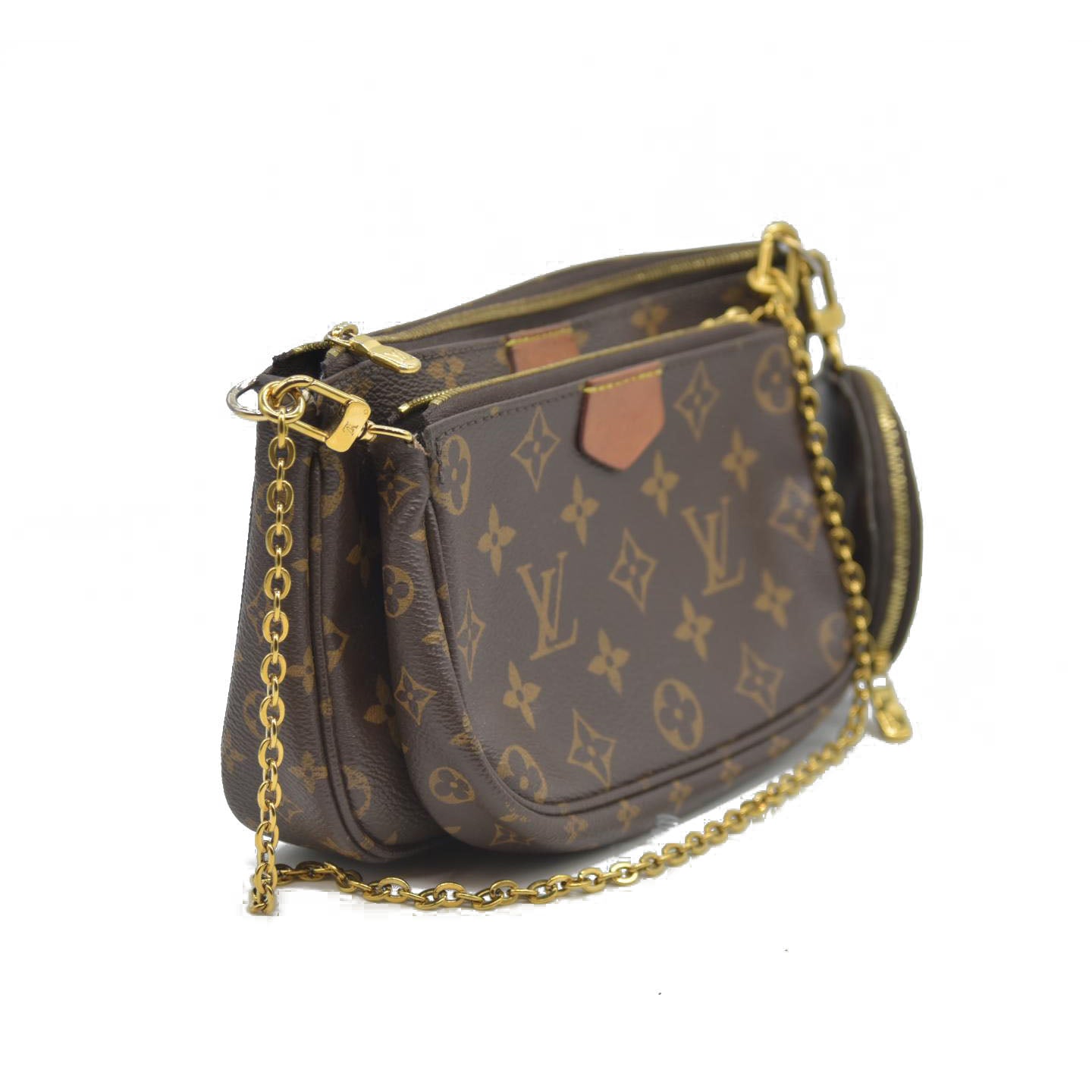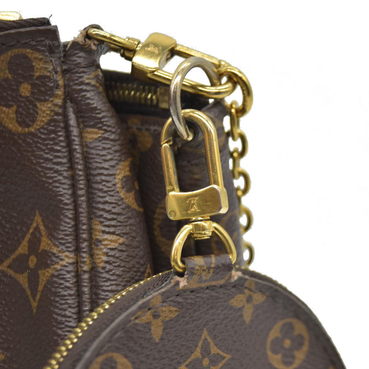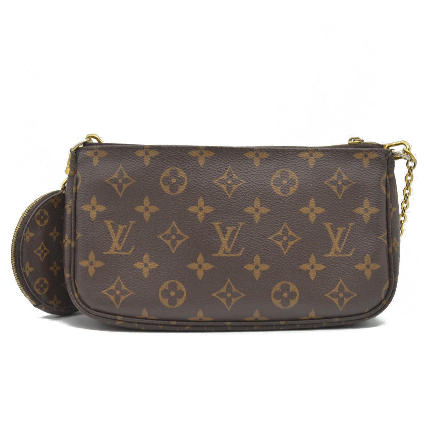 This is an authentic LOUIS VUITTON Monogram Multi Pochette Accessories in Kaki. This Multi Pochette Accessoires is a hybrid cross-body bag with multiple pockets and compartments that brings together a Pochette, a Mini Pochette and a Round Coin Purse. It is crafted of monogram canvas with mini monogram pattern on the sides of the pochettes including the coin purse, gold hardware and a removable khaki canvas strap.