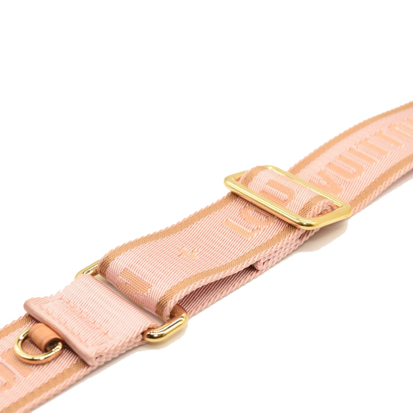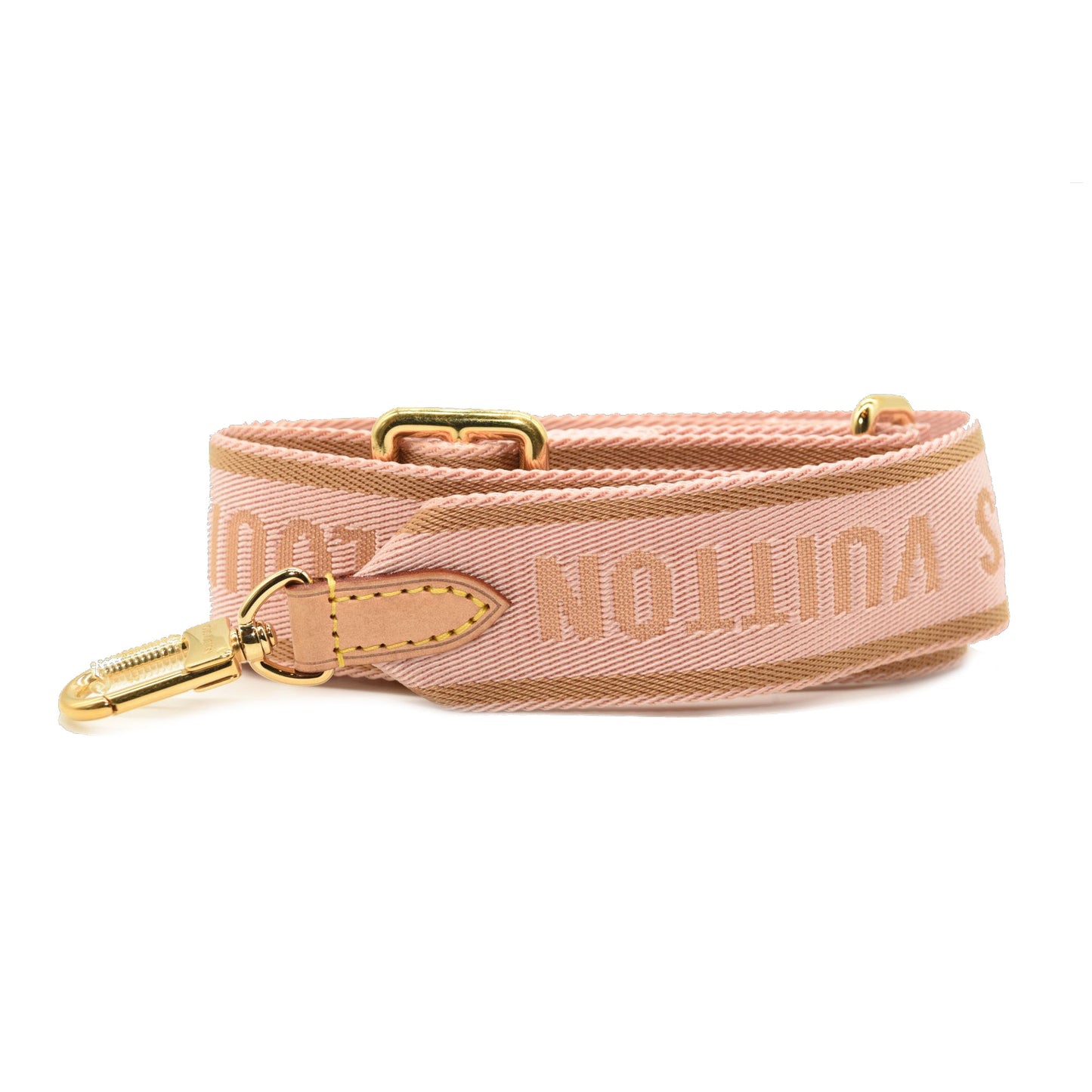 This is an authentic LOUIS VUITTON Monogram Multi Pochette Accessories Shoulder Strap in Rose Clair. This adjustable strap is crafted of pink canvas with the Louis Vuitton logo embroidered throughout. It has vachetta leather ends and a polished brass clasp at each end.