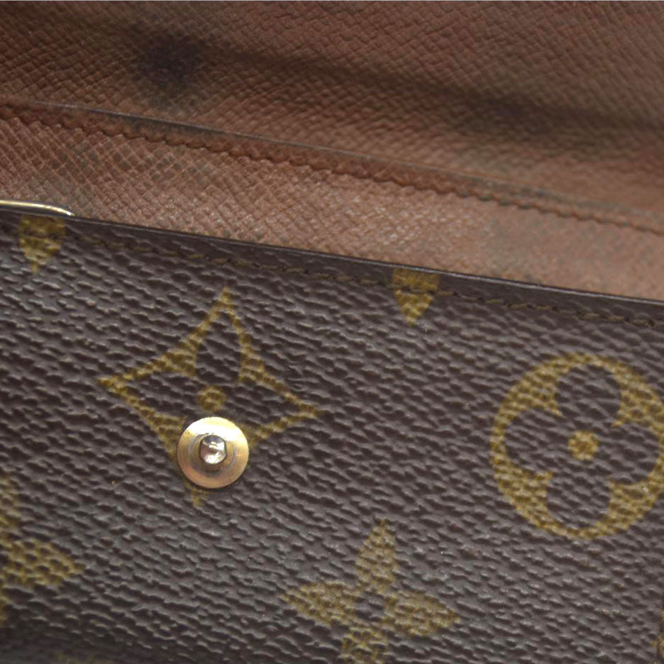 The exterior is rubbed with scratches. There are rubbed marks on the inside. There are stains on the inside. There are loose stitches around the folding area. The surface platings of the hardware is peeling off.
