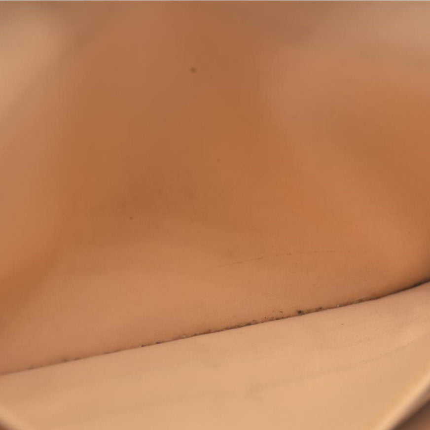 The exterior is rubbed with scratches. There are loose stitches around the folding area. There are rubbed marks on the inside.