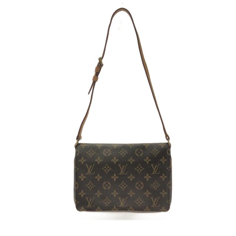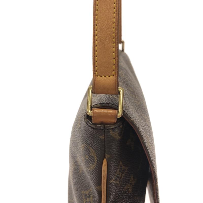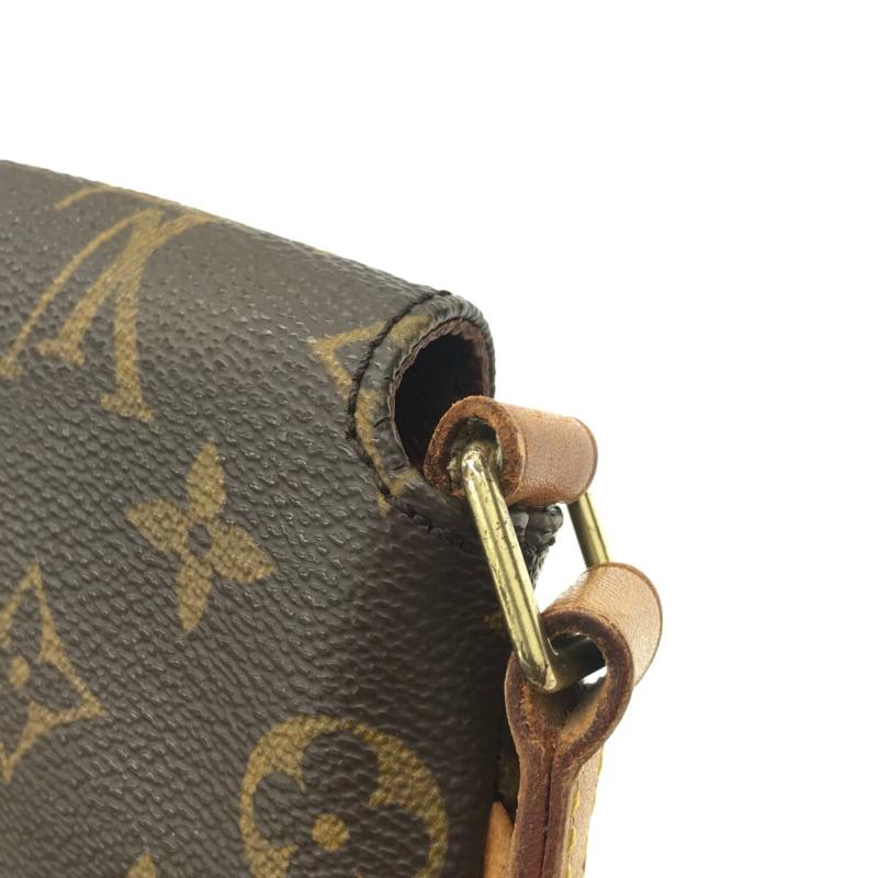 This is an authentic LOUIS VUITTON Monogram Musette Tango. This chic shoulder bag is finely crafted of Louis Vuitton monogram on coated canvas. The bag features a vachetta cowhide leather shoulder strap with polished brass hardware and a frontal flap. This flap opens to a saffron alcantara microfiber interior with a patch pocket.