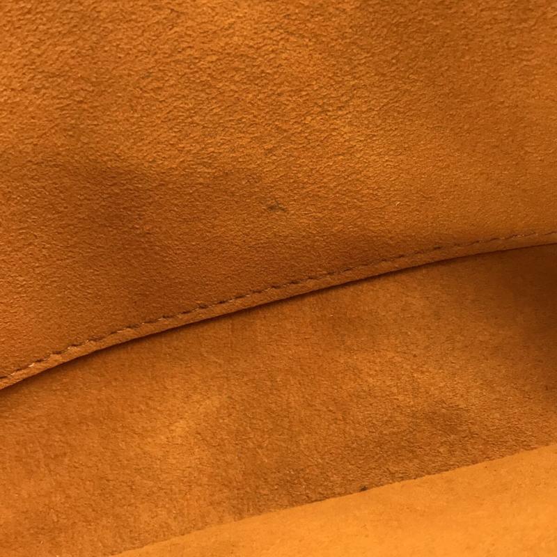 [Outside] overall : small scratches / slight dirt marks / slightly losing shape / metal coat peeling and partially rusted bottom : slight corner rubbing strap : obvious rubbing on corners / darkening main opening : slight corner rubbing / cracks / cowhide leather / light rain stains / color changed into brown due to tanning [Inside] overall : small scratches / slight dirt marks