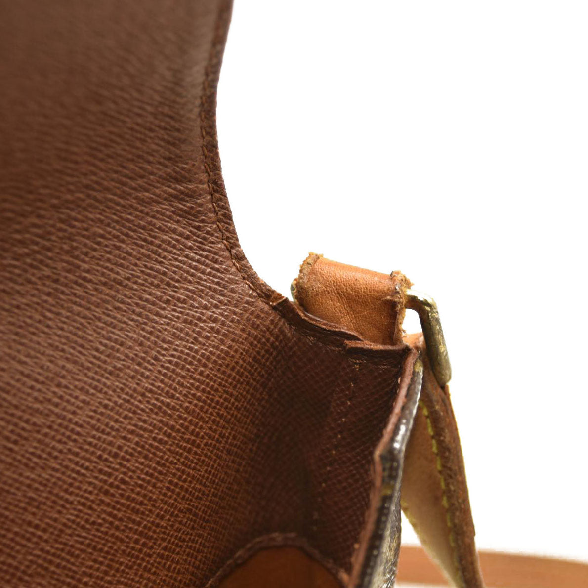 [Outside] overall : small scratches / obvious dirt marks / slightly losing shape / metal coat peeling and partially rusted bottom : obvious rubbing on corners but not torn strap : obvious rubbing on corners / darkening / cracks / slight fabric peeling main opening : slight corner rubbing / cracks / cowhide leather / light rain stains / color changed into brown due to tanning