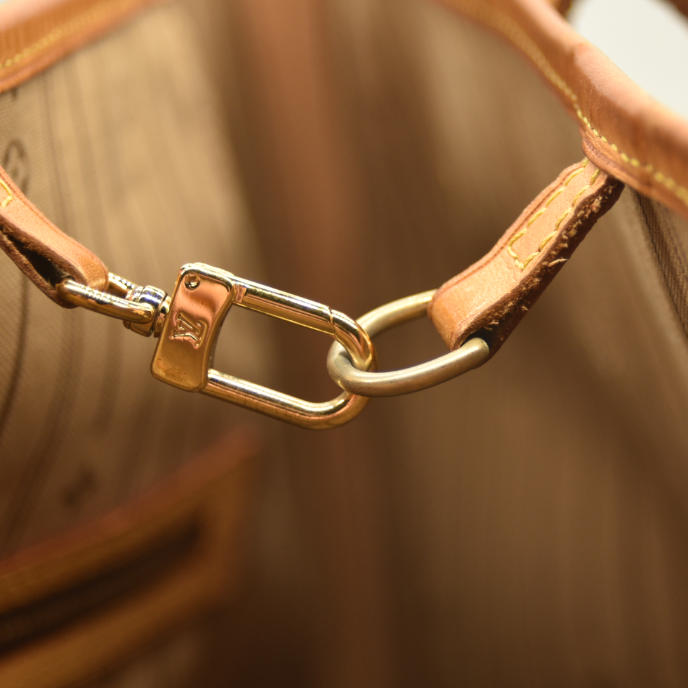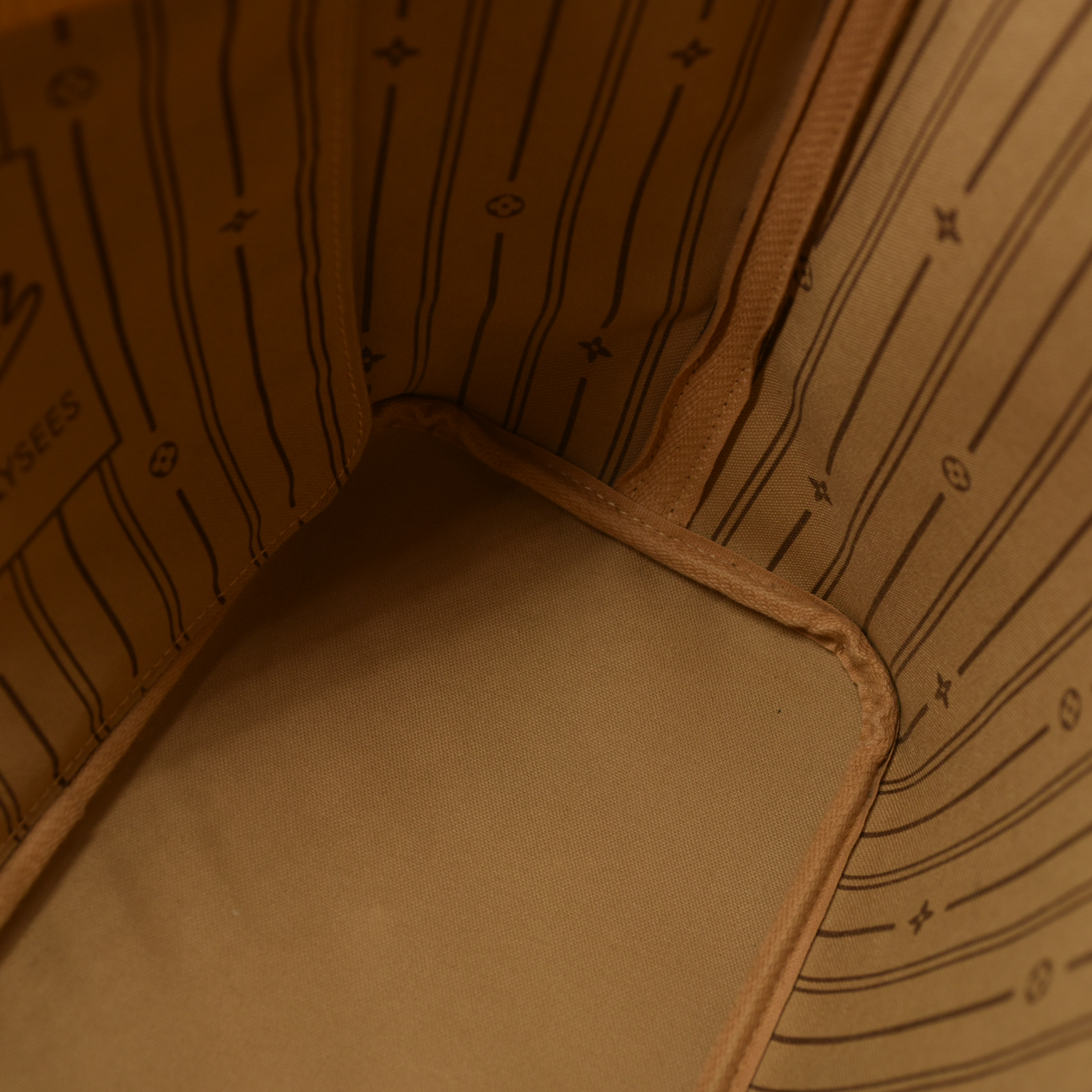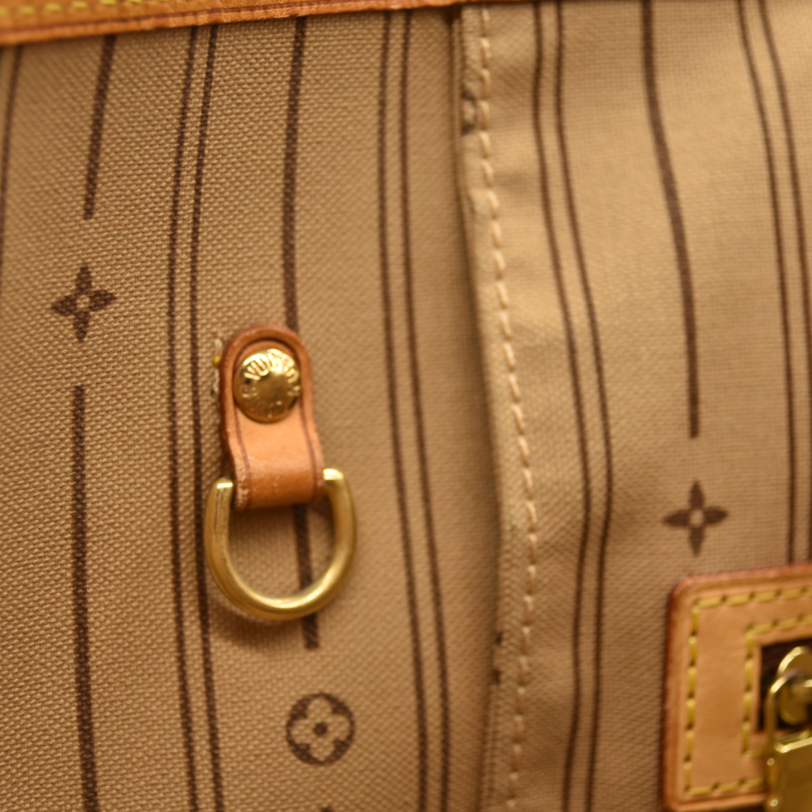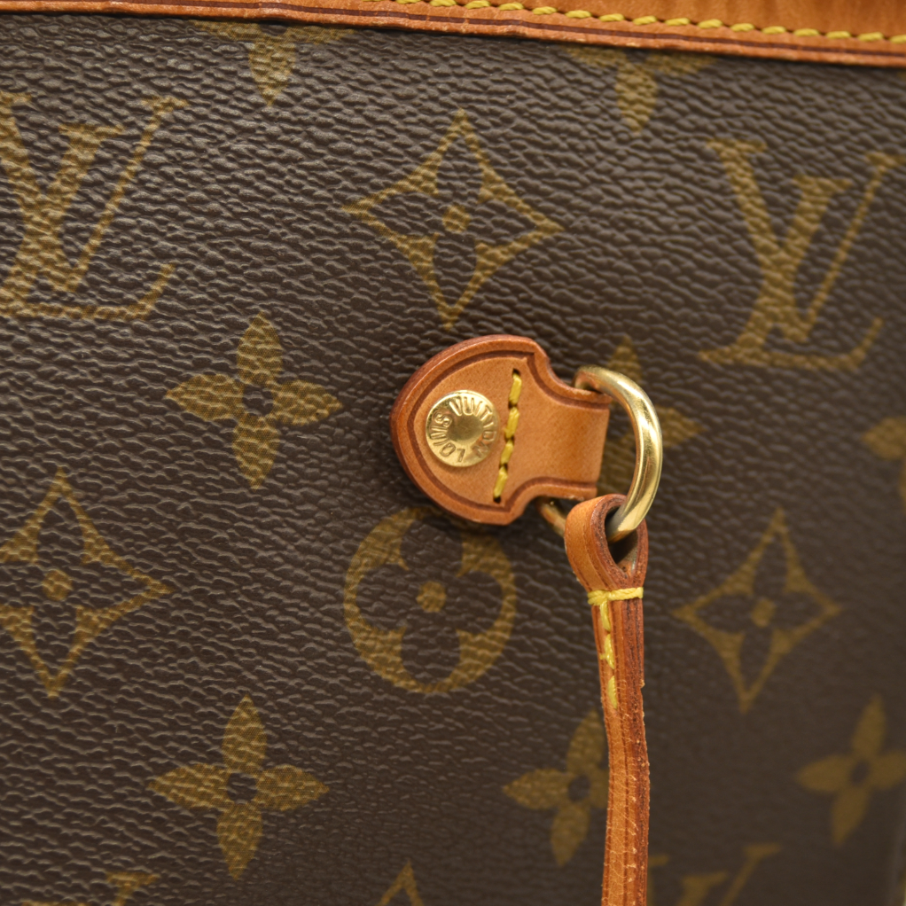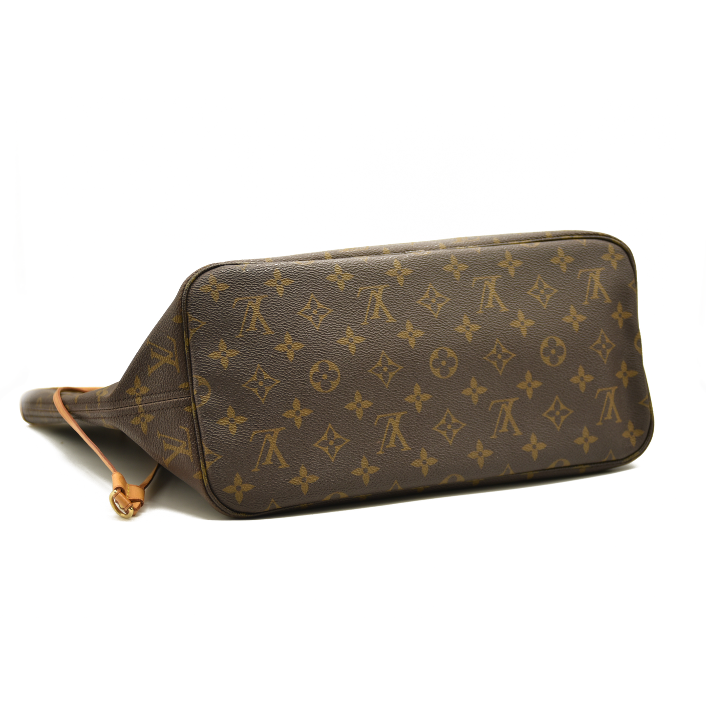 This is an authentic LOUIS VUITTON Monogram Neverfull MM. This stylish tote is crafted of classic Louis Vuitton monogram on brown toile canvas in the medium size. The tote features vachetta cowhide leather top strap handles, trim and side cinch cords with polished brass hardware. The wide top is open to a striped fabric beige interior with a zippered pocket. This popular shoulder tote is ideal for day with the luxury and style, from Louis Vuitton!