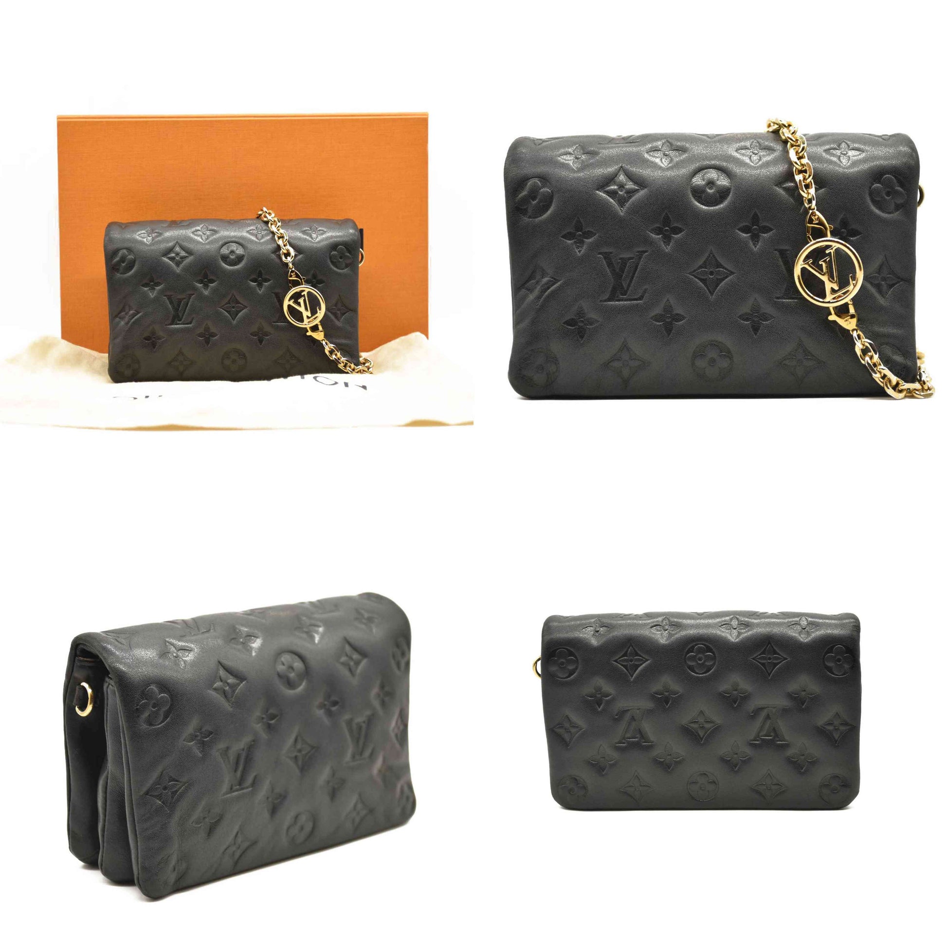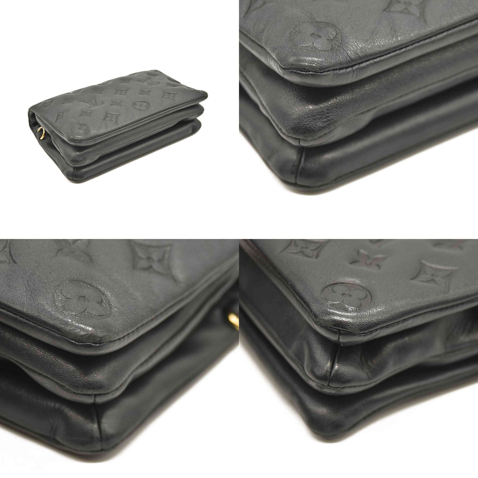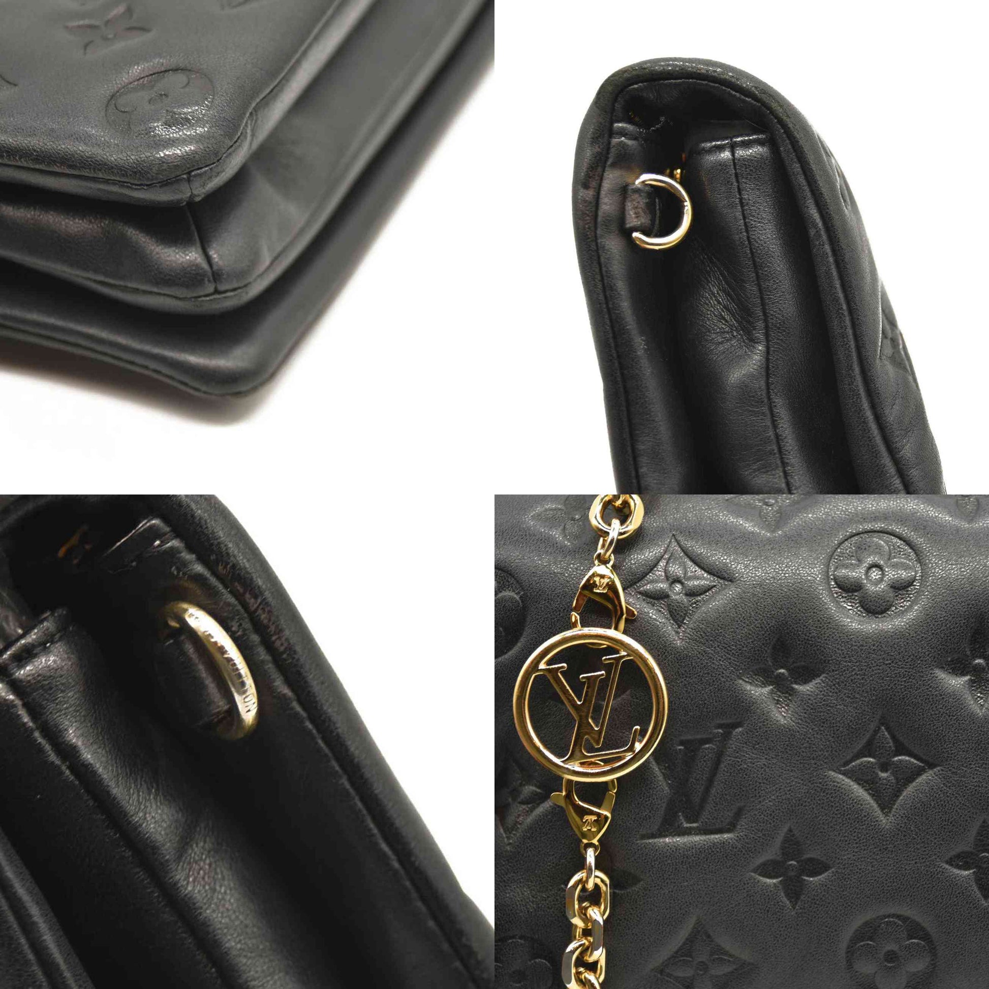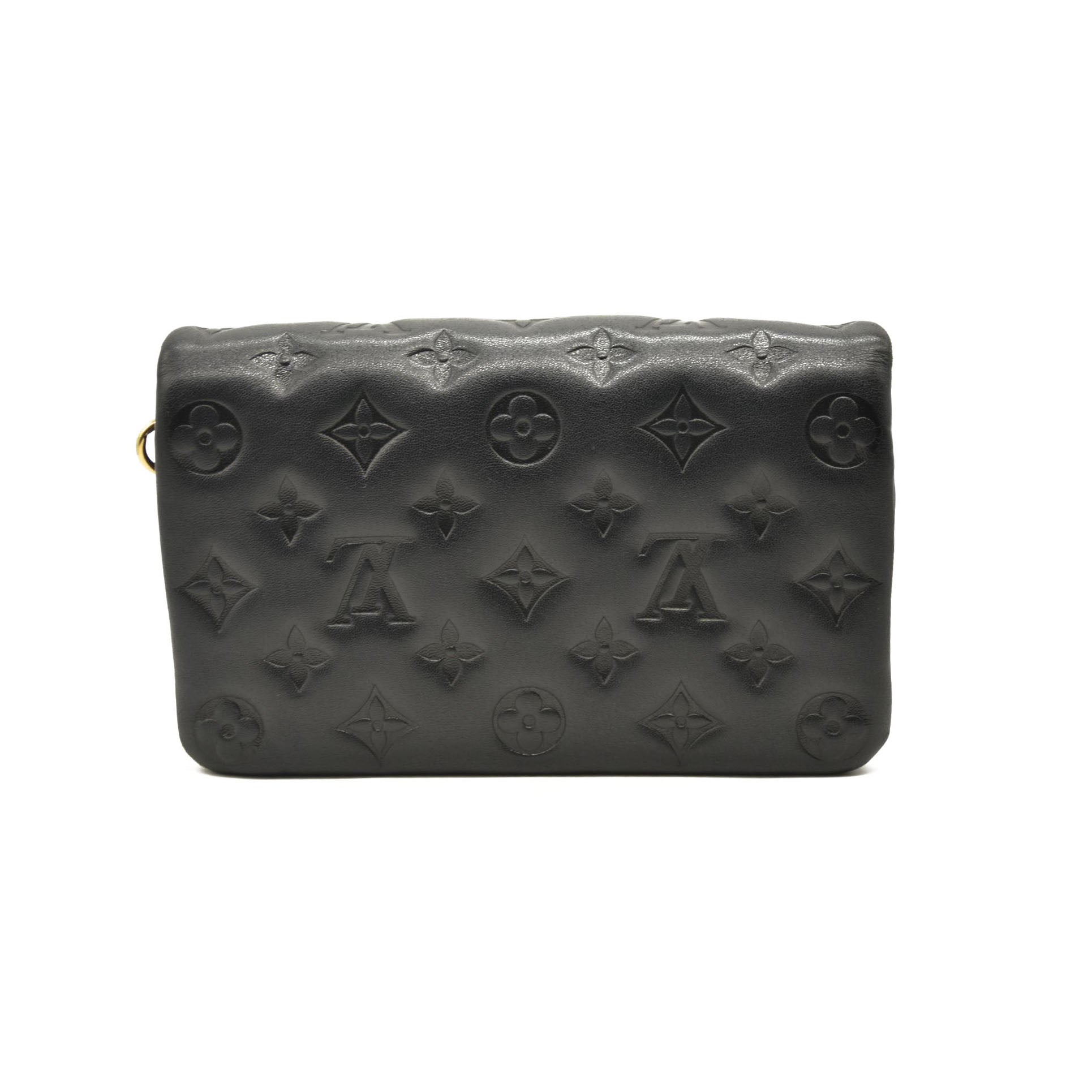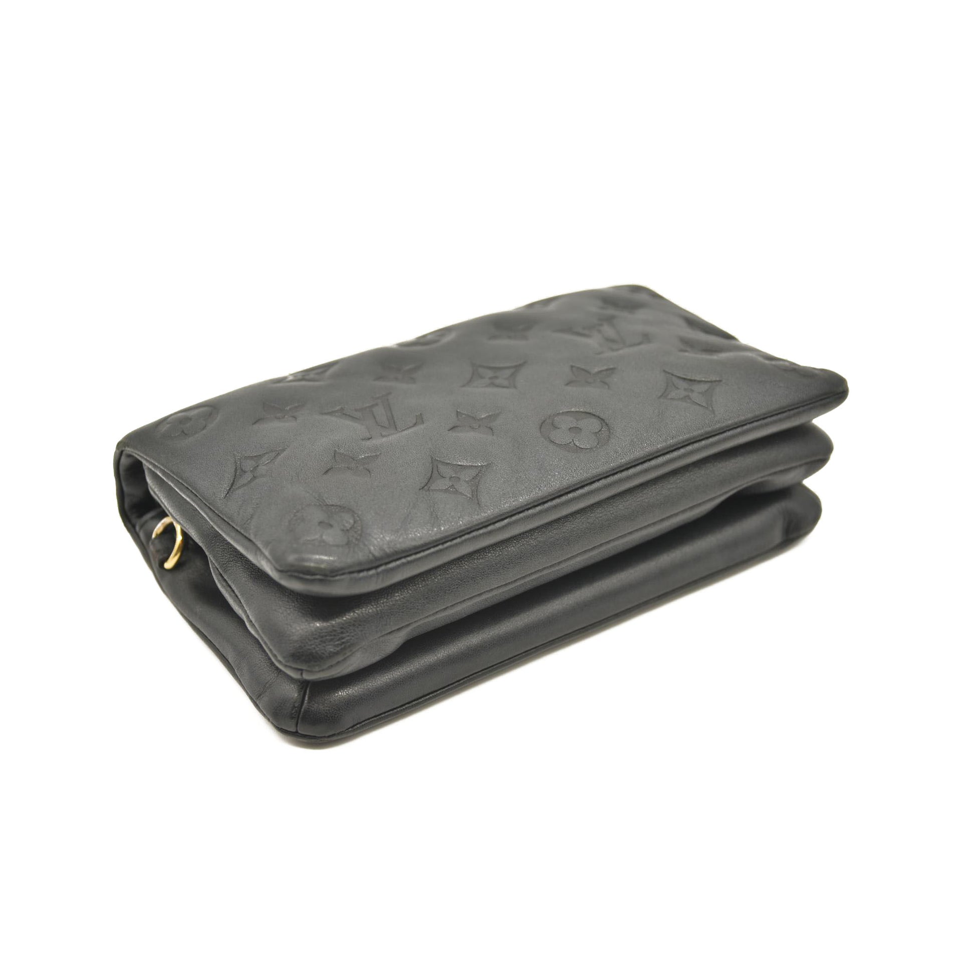 LOUIS VUITTON Lambskin Embossed Monogram Pochette Coussin Black