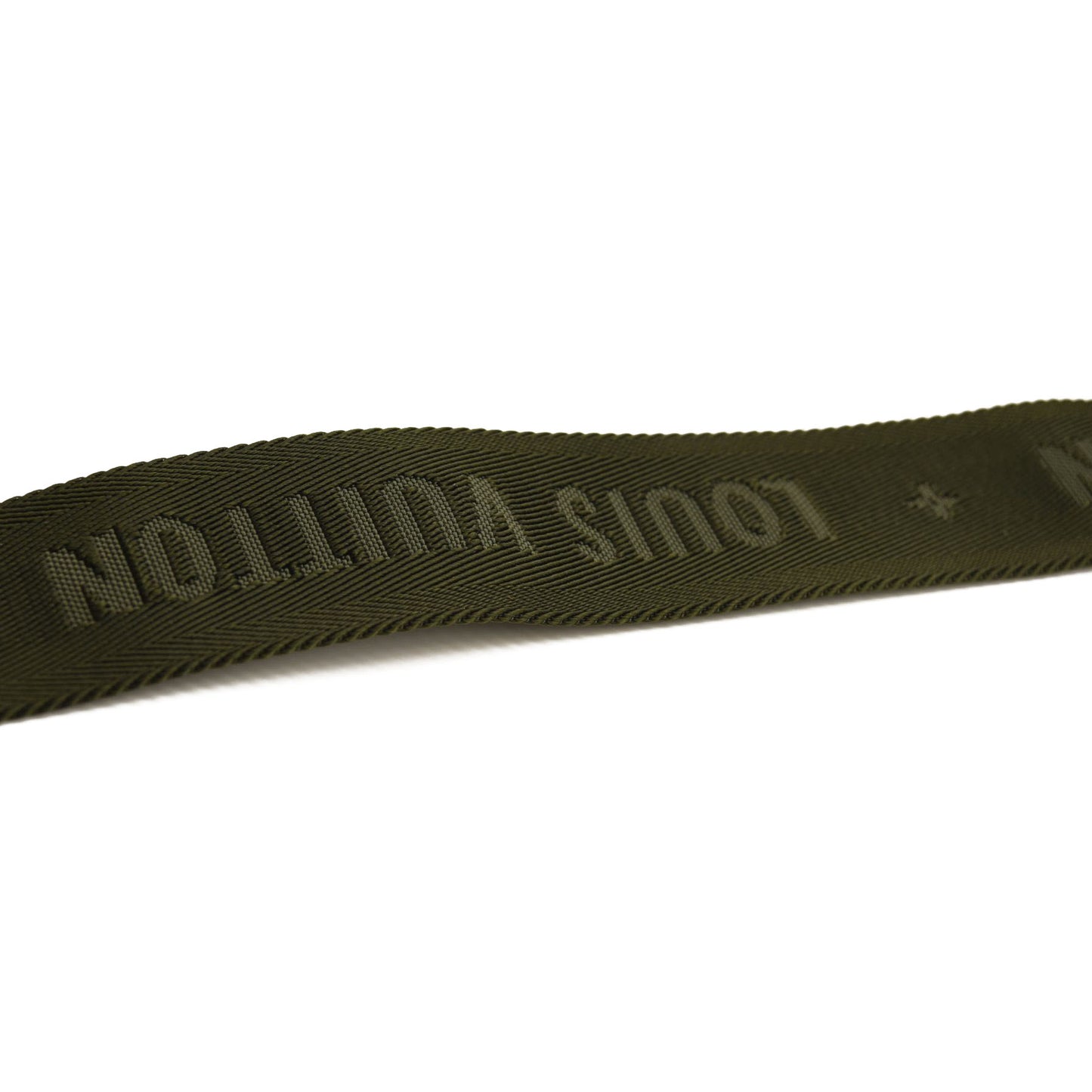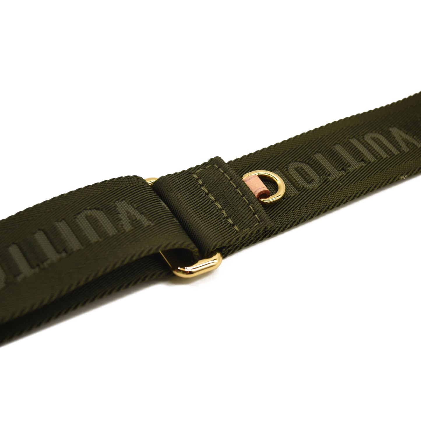 This is an authentic LOUIS VUITTON Monogram New Wave Multi Pochette Accessories Shoulder Strap in Khaki. This adjustable strap is crafted of olive green nylon with the Louis Vuitton Paris logo embroidered throughout. The strap has cowhide leather trim and aged brass metal D-ring clasps for your tote or other Louis Vuitton handbag with D-rings.