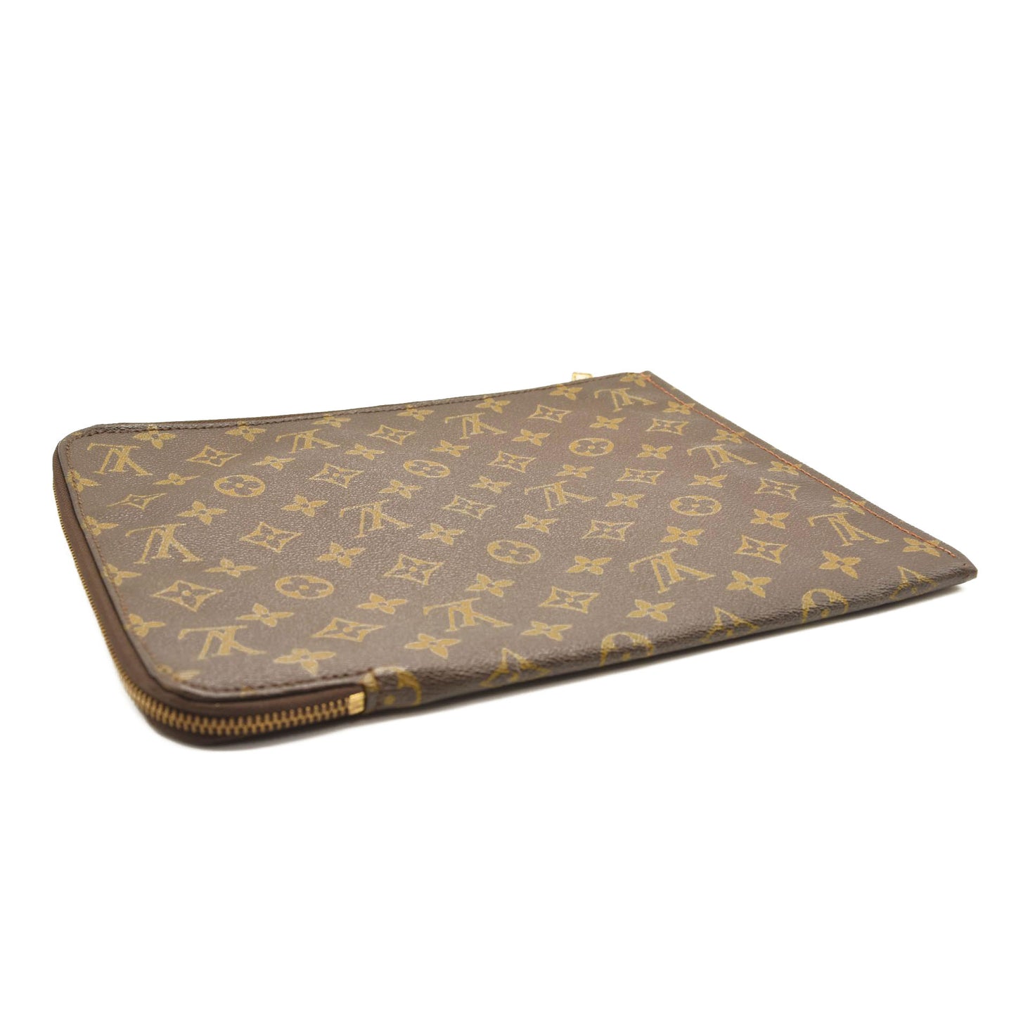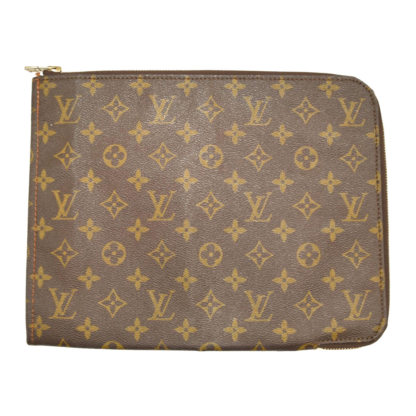 This is an authentic LOUIS VUITTON Monogram Poche Documents Portfolio Case. This stylish case is finely crafted of classic Louis Vuitton monogram on toile canvas. The case features a brass zipper that opens to a terra-cotta cross grain leather interior. This is a marvelous portfolio that is as practical as it is chic, from Louis Vuitton!