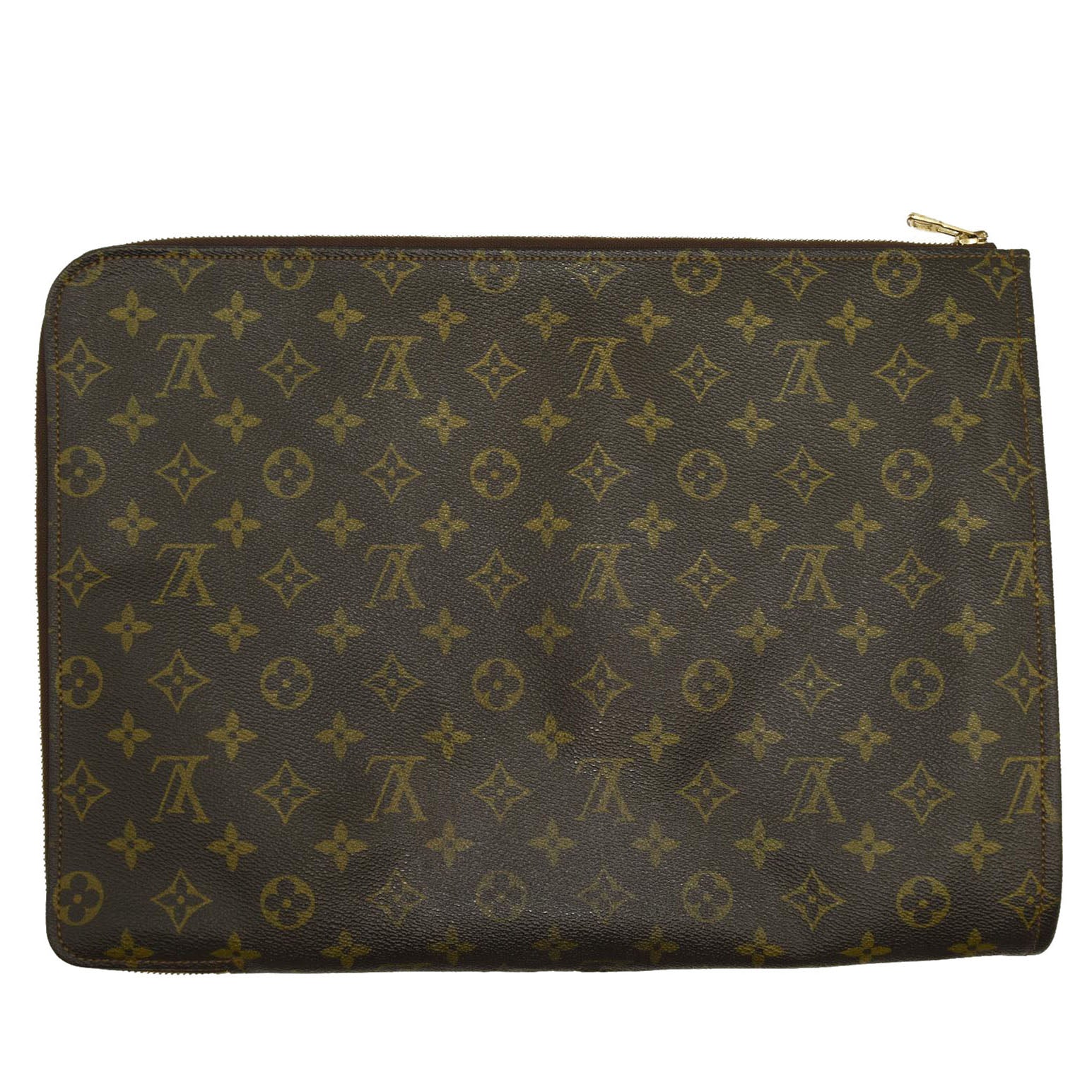 This is an authentic LOUIS VUITTON Monogram Poche Documents Portfolio Case. This stylish case is finely crafted of classic Louis Vuitton monogram on toile canvas. The case features a brass zipper that opens to a terra-cotta cross grain leather interior. This is a marvelous portfolio that is as practical as it is chic, from Louis Vuitton!