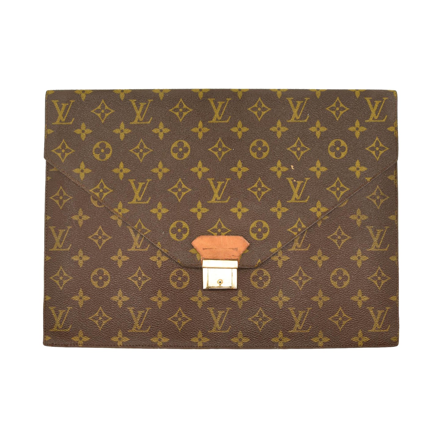 This is an authentic LOUIS VUITTON Vintage Monogram Poche Plate Envelope Clutch PM. This stylish document holder is crafted of Louis Vuitton monogram on toile canvas. The item features a lock closure in brass hardware. This opens to smooth light brown leather interior. This is an excellent clutch, ideal for business or pleasure, from Louis Vuitton!