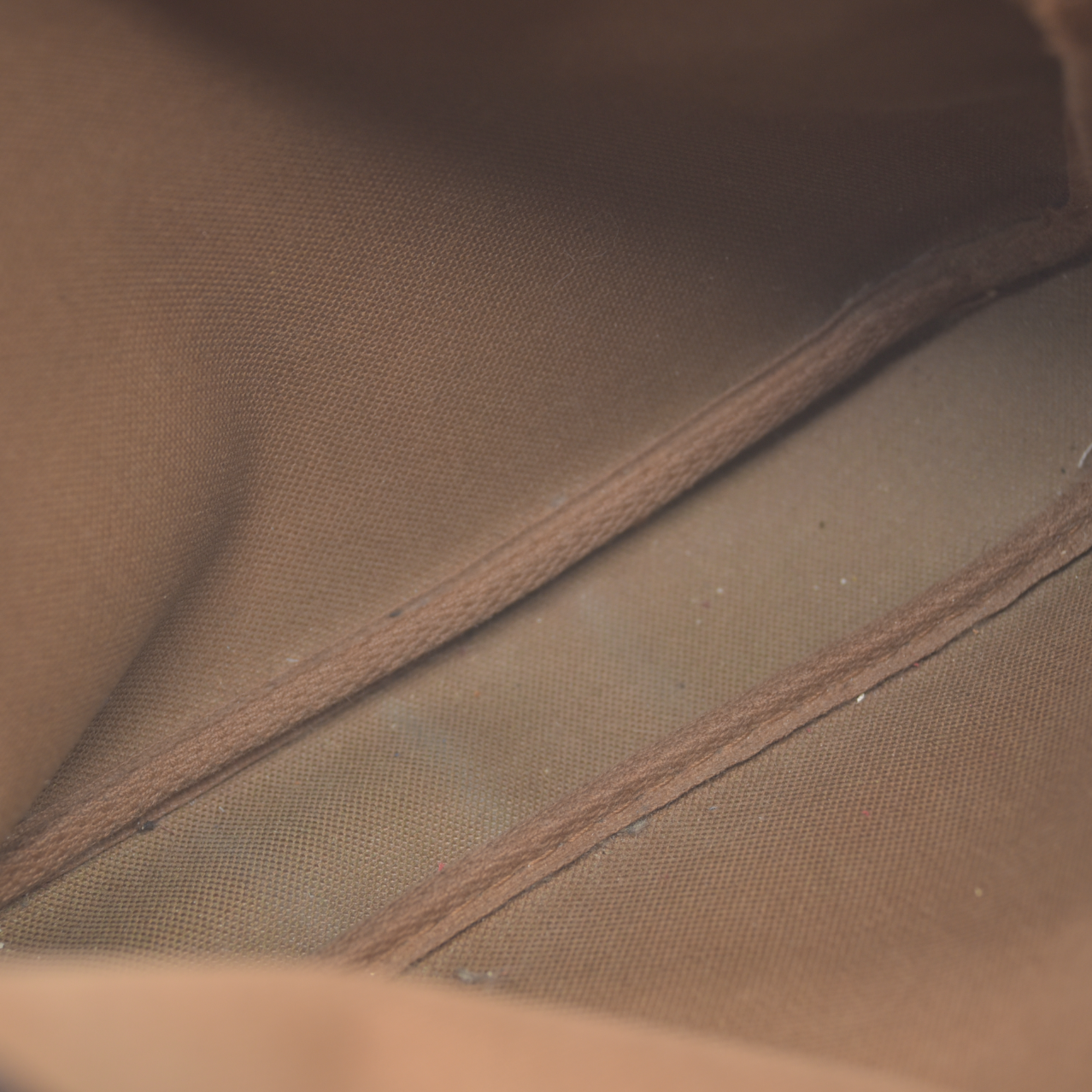 Exterior: Patina of vachetta, scuffs, liquid marks, cracks