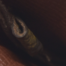 The exterior is rubbed with scratches. There are rubbed marks on the inside. The metal fittings are missing.