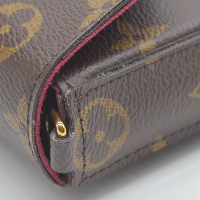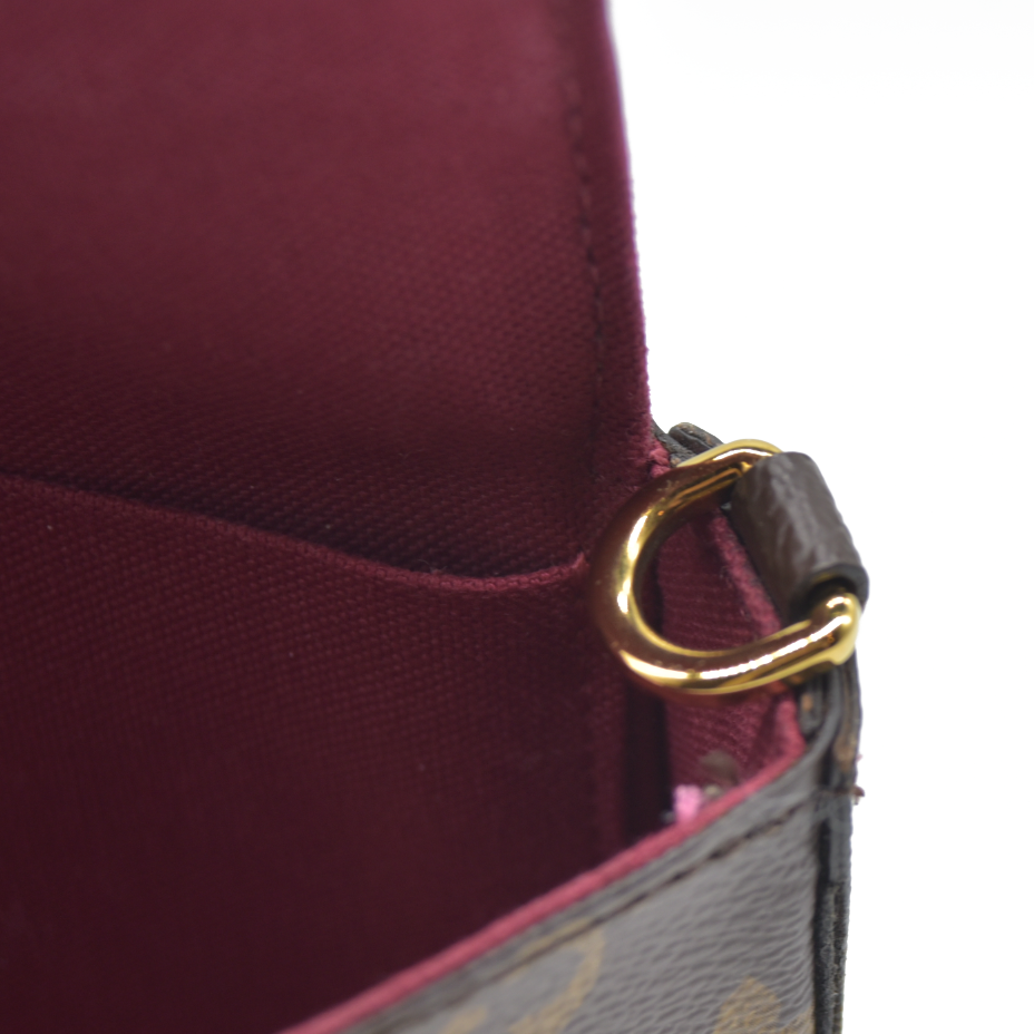 $1620 AUCTION Louis Vuitton Monogram Pochette Felicie Chain Wallet Fuchsia MI4166