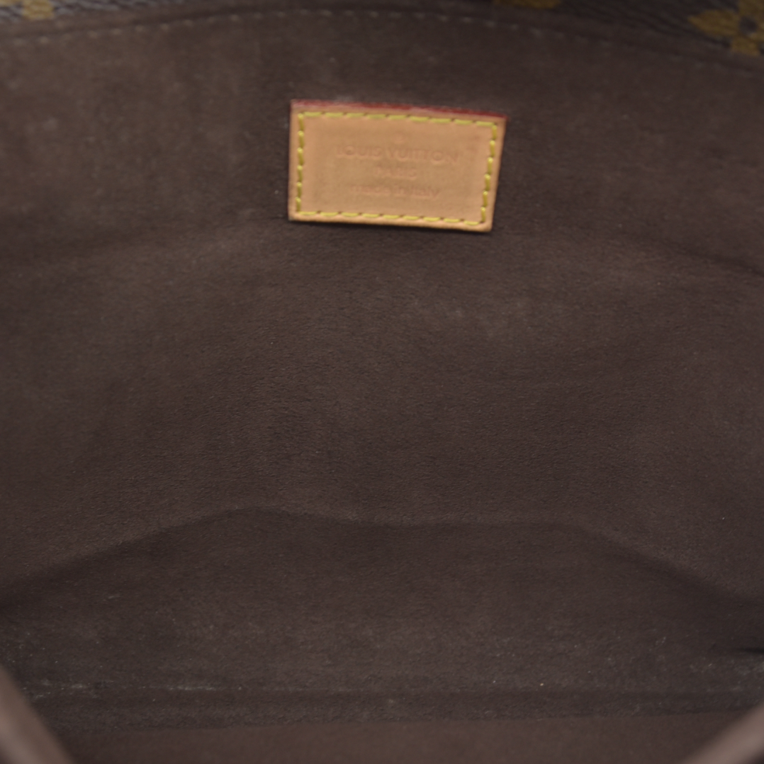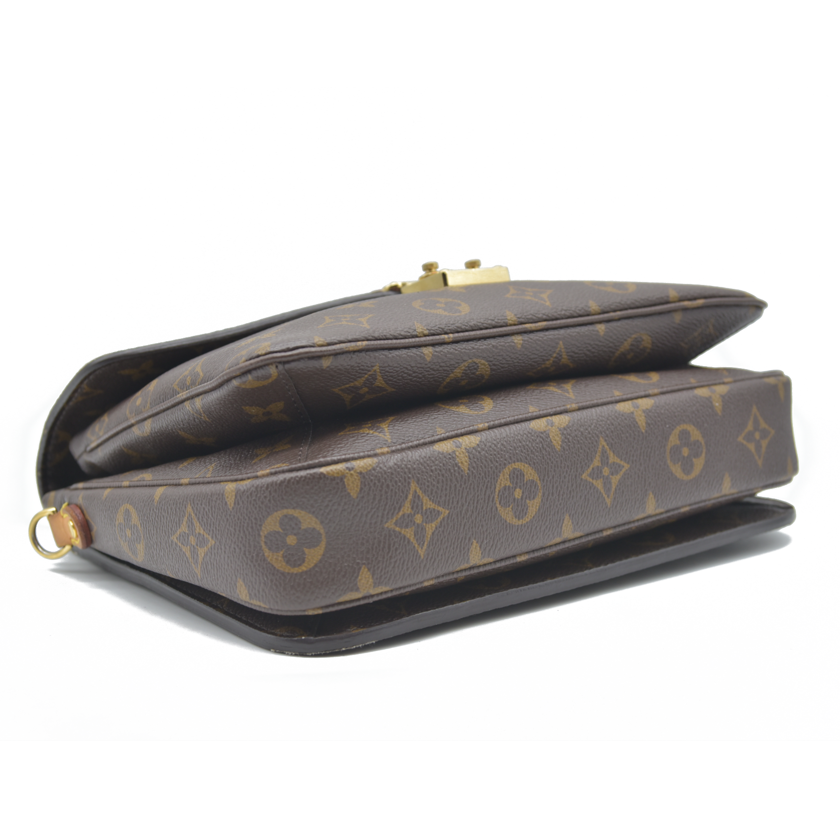 This is an authentic LOUIS VUITTON Monogram Pochette Metis. This chic handbag is finely crafted of classic Louis Vuitton monogram toile canvas. The shoulder bag features a vachetta cowhide leather handle, an optional adjustable monogram canvas shoulder strap, a rear exterior zipper pocket, and a V-shaped front flap with a polished brass S-lock. The flap opens to a partitioned brown microfiber interior with a patch pocket.