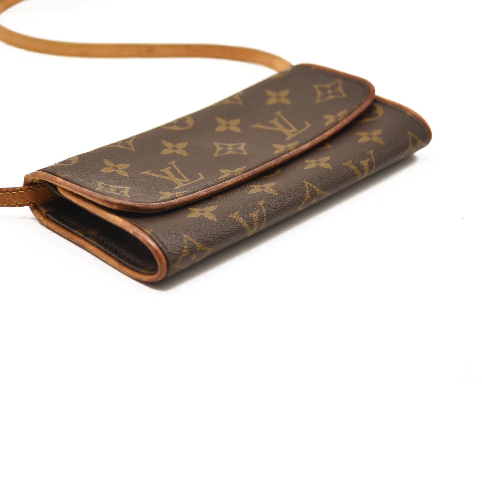 This is an authentic LOUIS VUITTON Monogram Pochette Twin PM. This chic pochette is finely crafted of classic Louis Vuitton monogram on toile canvas. The pochette features a removable vachetta cowhide shoulder strap and trim, with a long flap that opens to an ivory microfiber interior with a patch pocket. This versatile bag is suitable for use as a shoulder bag, cross body pochette or as a clutch, with the unmistakable look of Louis Vuitton!