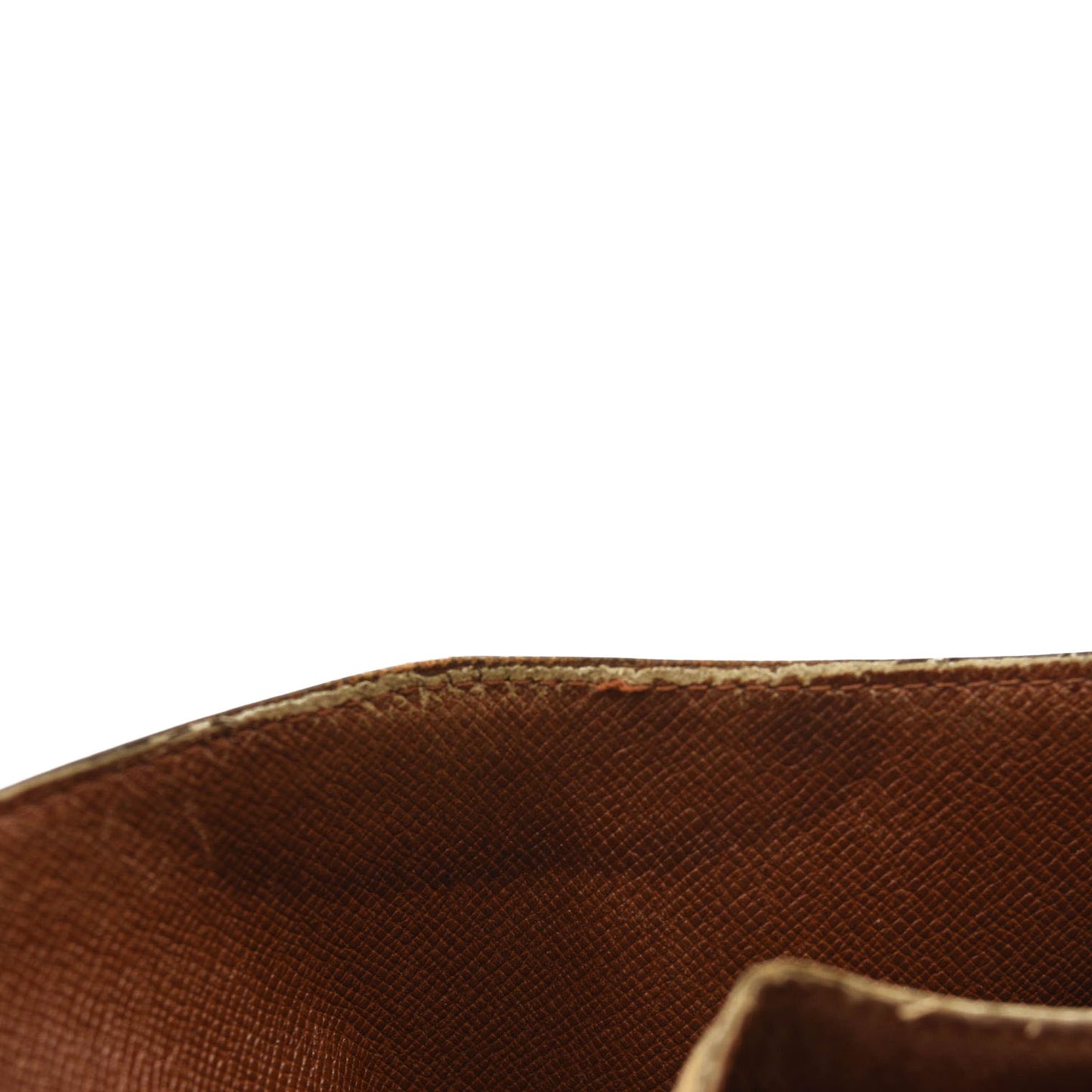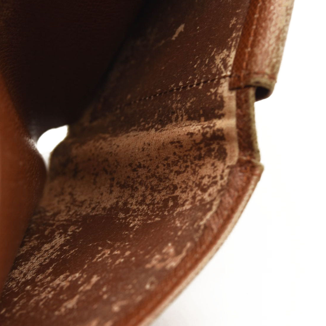 Interior: Scuffs, surface wear, stretched leather/canvas, stretched pockets, peeling, sticking pockets
