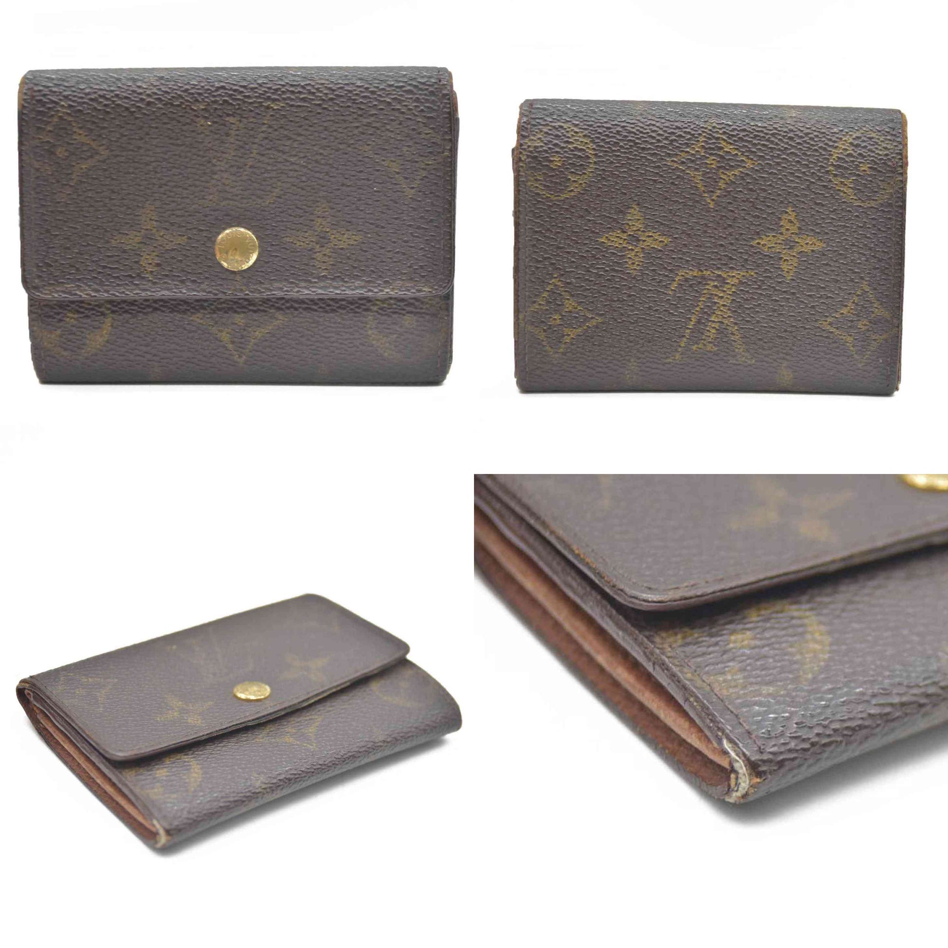 Louis Vuitton Monogram Porte Monnaie Plat Coin Purse Wallet Brown