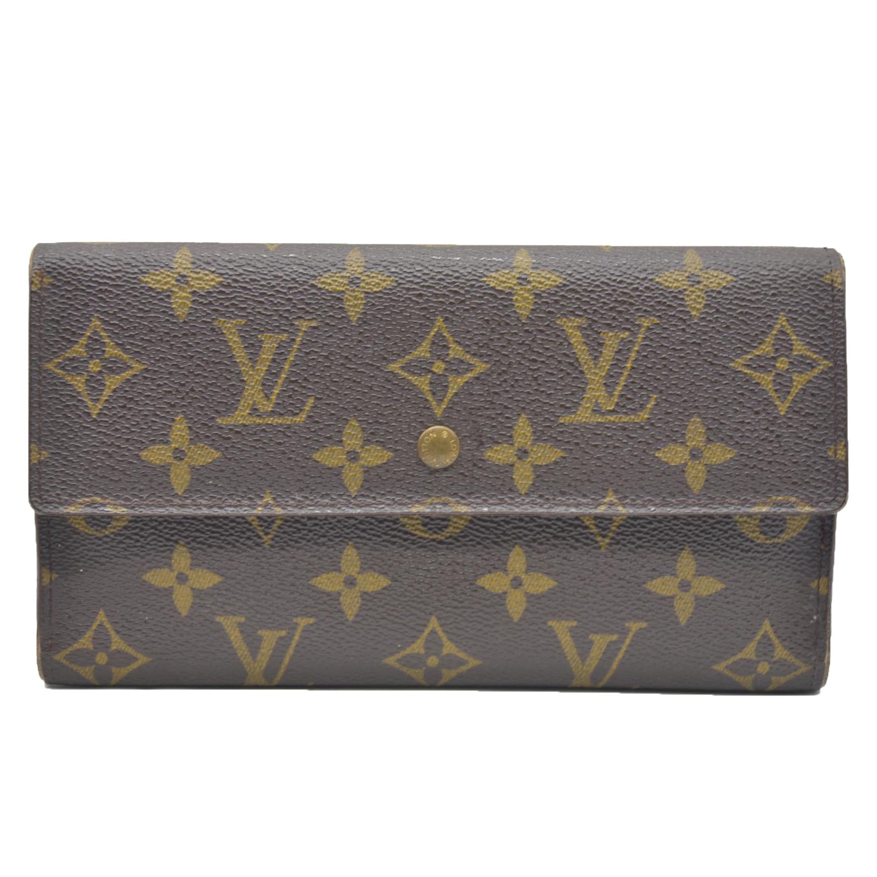 $725 Louis Vuitton Monogram Portefeiulle Sarah Long Trifold Wallet Brown TH0090