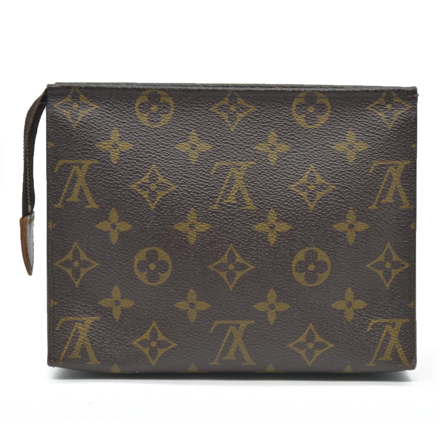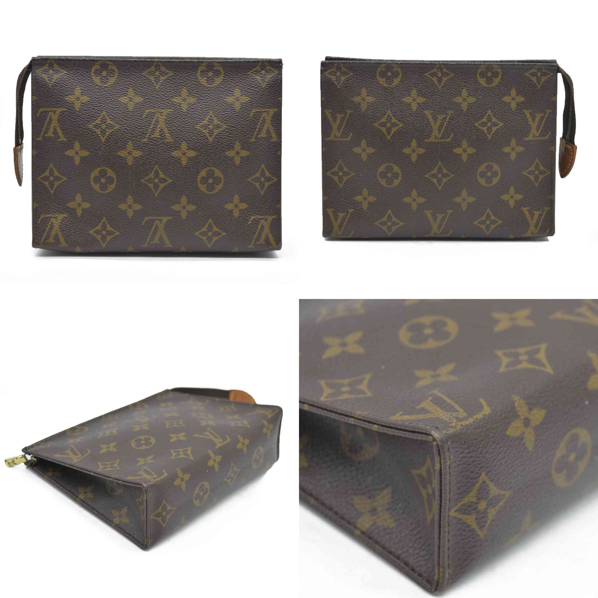 Color Monogram. Material Monogram Canvas. Style Pouch. Leather:sun burn, rubbing, stain, scratches. Inside rubbing, dirt, stain, slight sticky. Accessory There is no item box and dust bag. We will send only the item which is put in the photo.