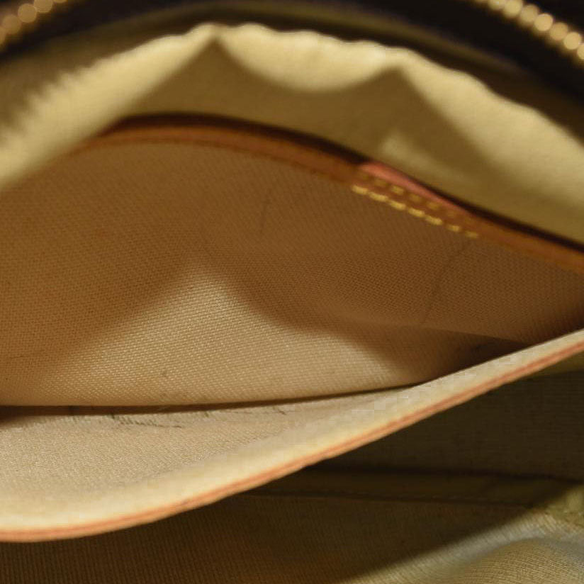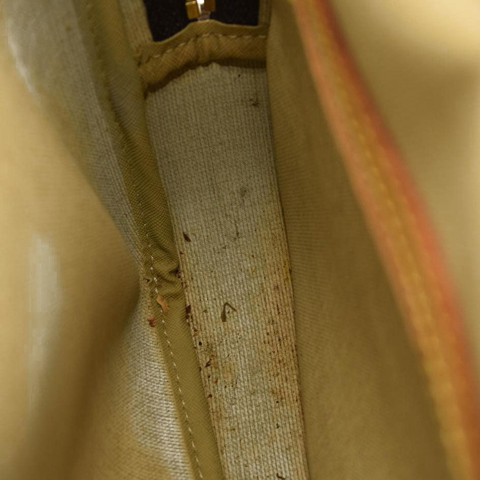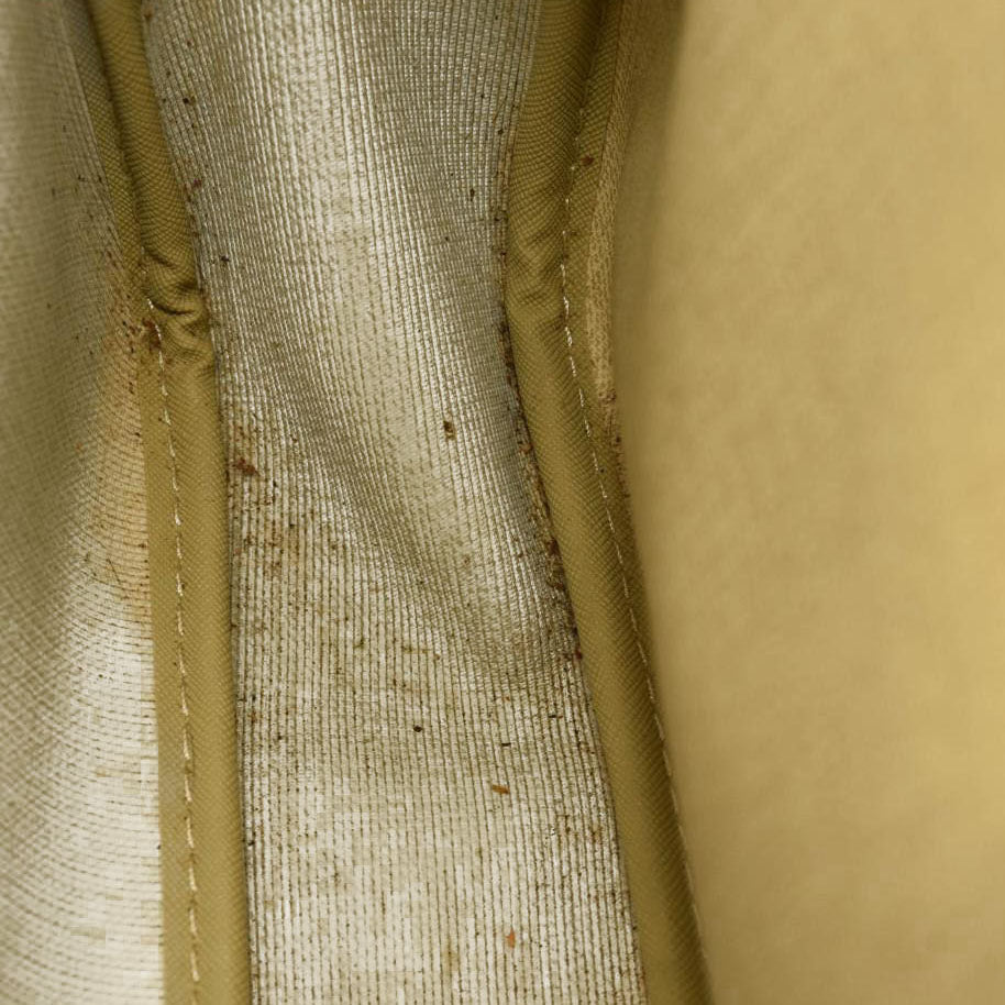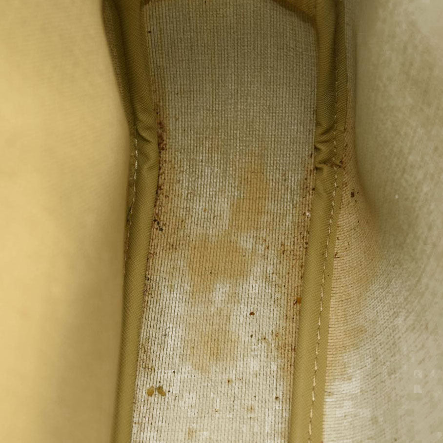 [Outside] overall : large scratches / (cracks on cowhide leather, fabric peeling) / slight dirt marks / obviously losing shape / metal coat peeling bottom : obvious rubbing on corners but not torn strap : obvious rubbing on corners / cracks / (cowhide leather part) main opening : obvious rubbing on corners but not torn / cowhide leather / obvious rain stains / color changed into brown due to tanning